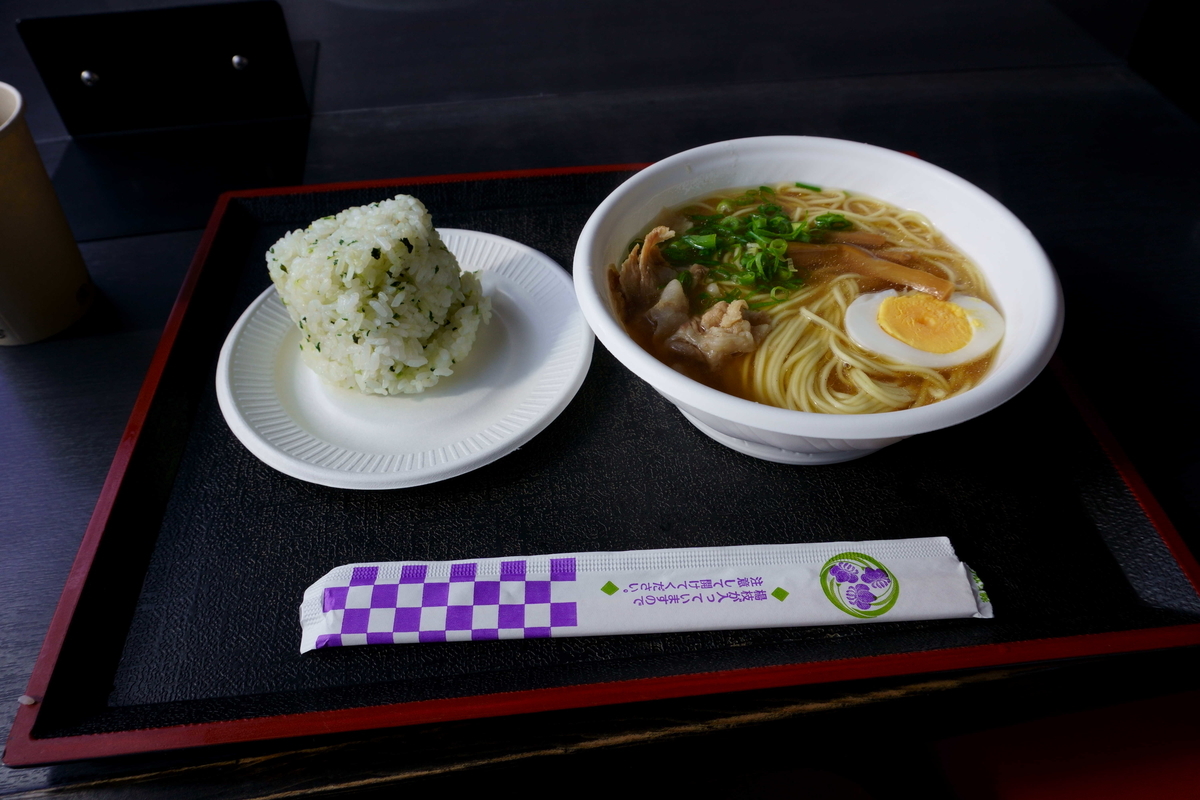 中華そばとわかめおにぎりのセット。