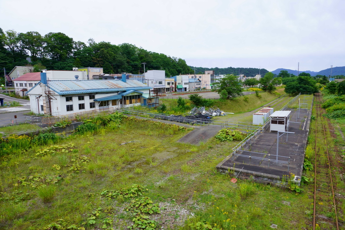 清水沢駅。広いヤードが石炭で栄えた時代を偲ばせる。