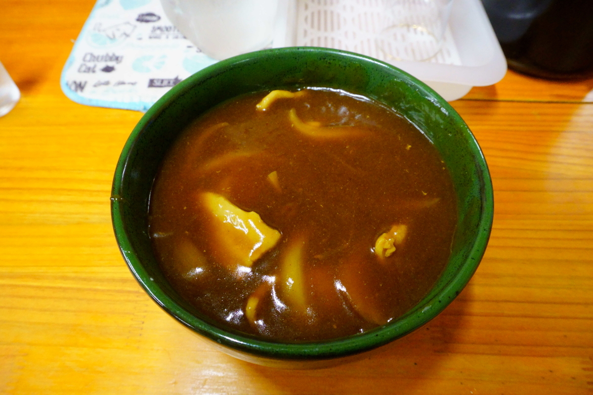 名物のカレーそば。夕張炭鉱で食べられていた味が引き継がれているらしい。