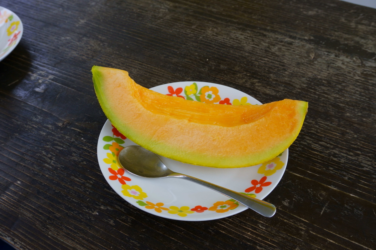 清水沢駅近くで食べた夕張メロン。