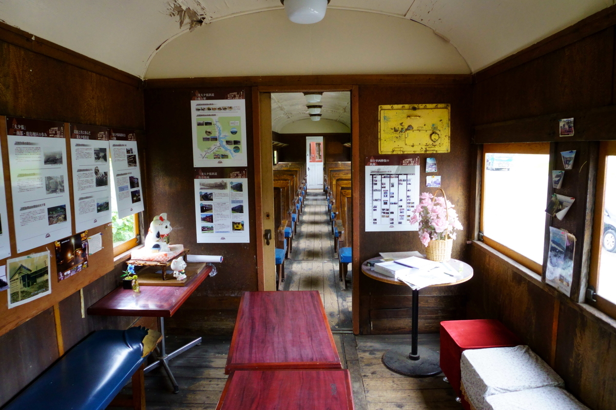 男酌バロンを出て南大夕張駅跡に向かう。客車が展示されており、中に入ることができる。天候の厳しい北海道にもかかわらず、保存状態が良く、地元の人の愛情を感じる。