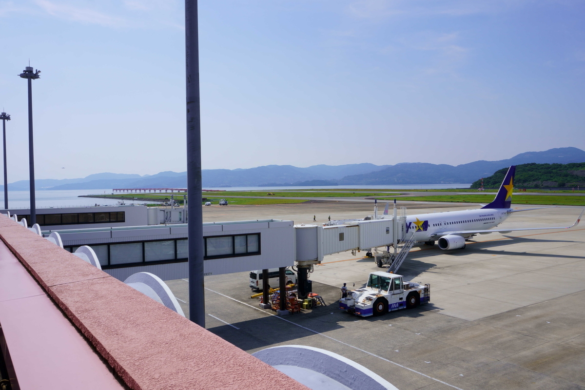 長崎空港に着く。長崎空港は大村湾に浮かんでいる。