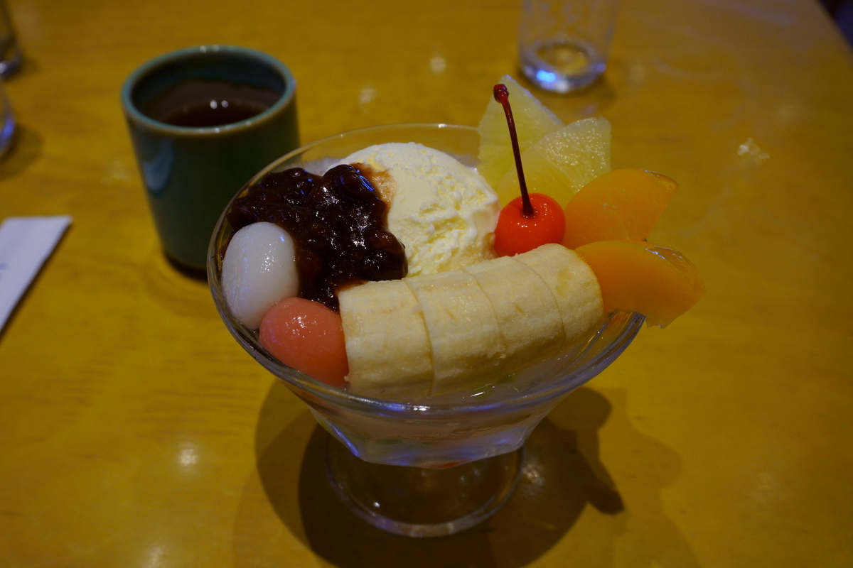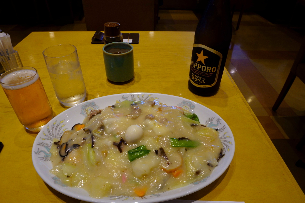 昼間からビールと皿うどんを食べる。最後にはあんみつを食べた。いい気分になりデパートを出る。