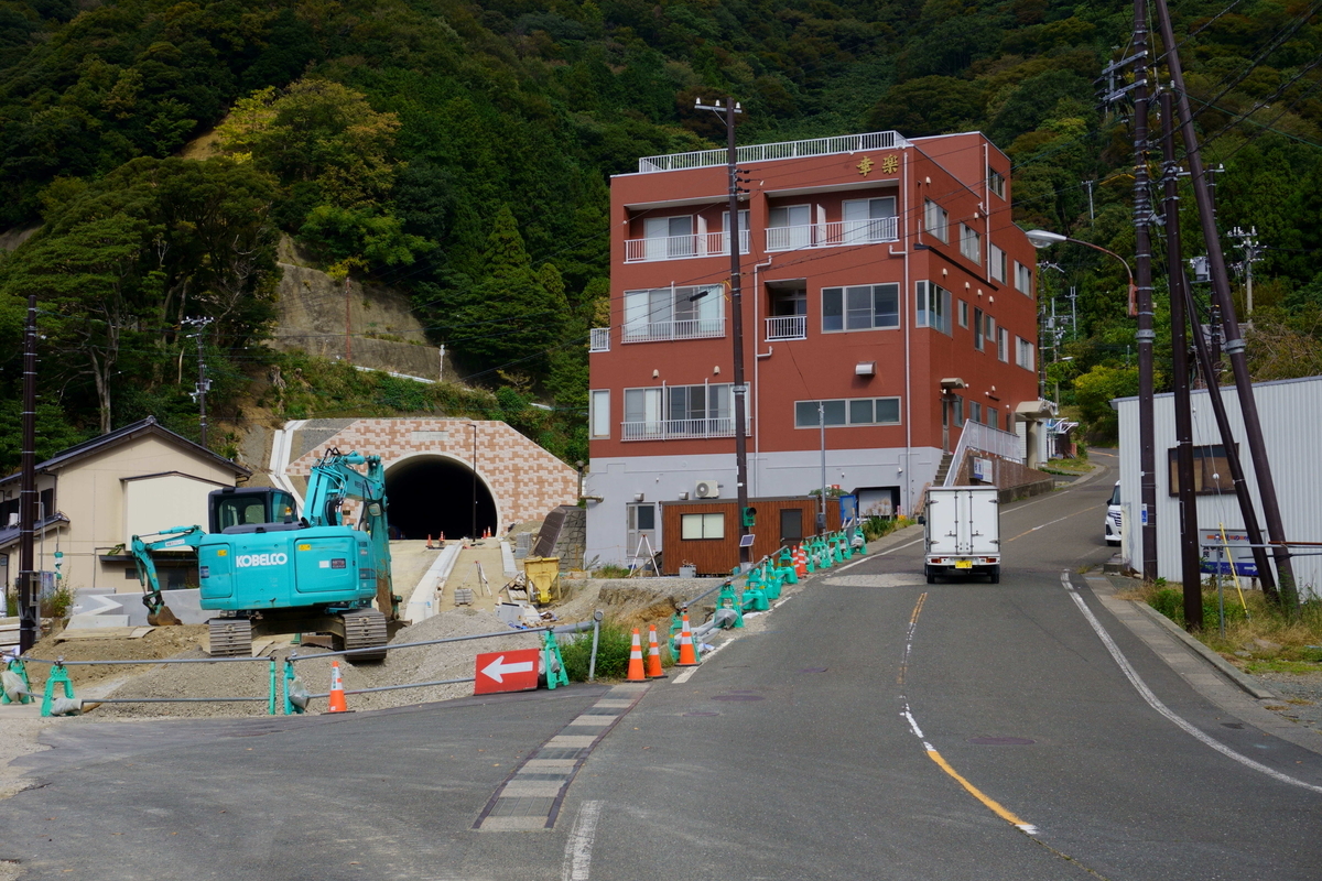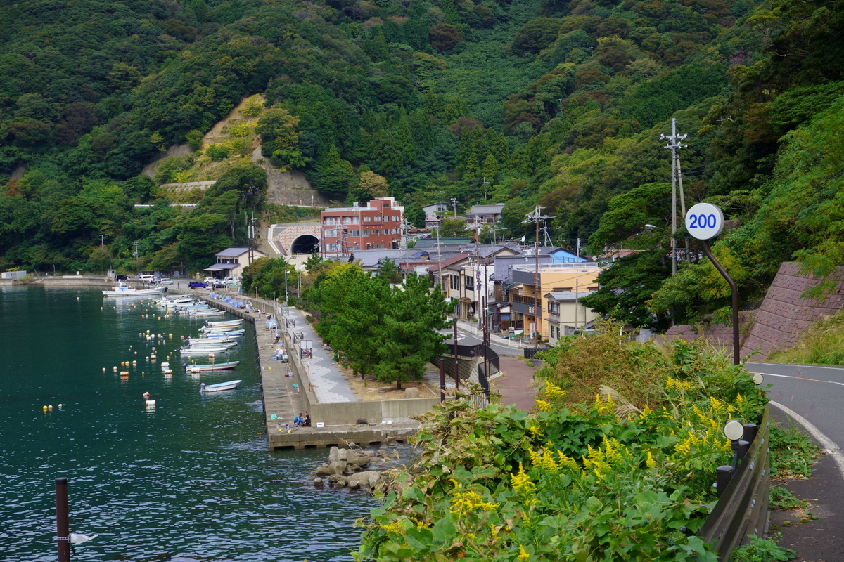 鳥取でも見かけたことがあるが、集落のすぐ後ろの山にトンネルが掘られている。昔ながらの漁村と近代的なトンネルの風景が良い。