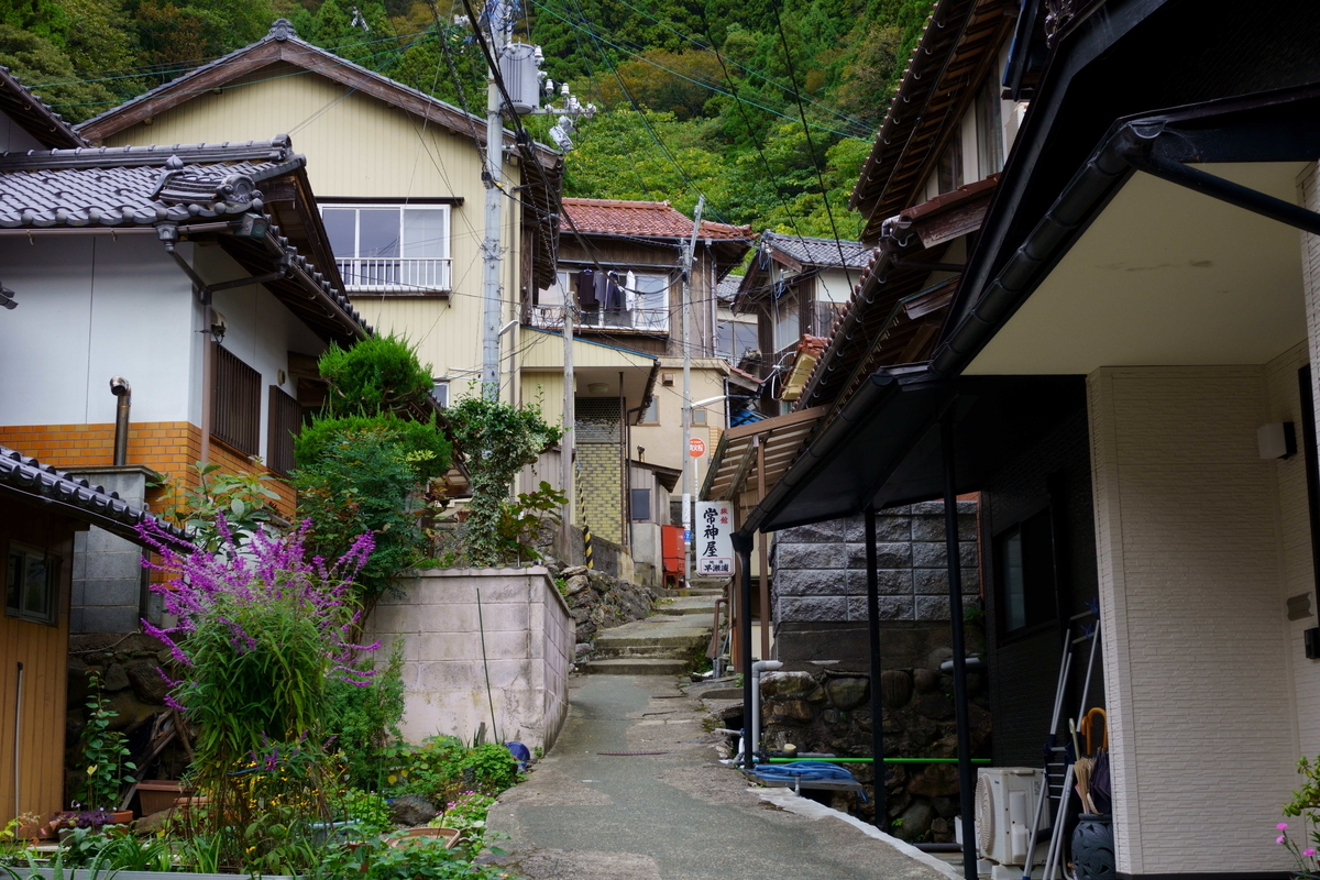 こんな細い曲がった路地の両脇に家が並ぶ風景がどうしても好きだ。区画整理されていない近所の路地を自転車で走り回っていた小学生の頃と変わらない。