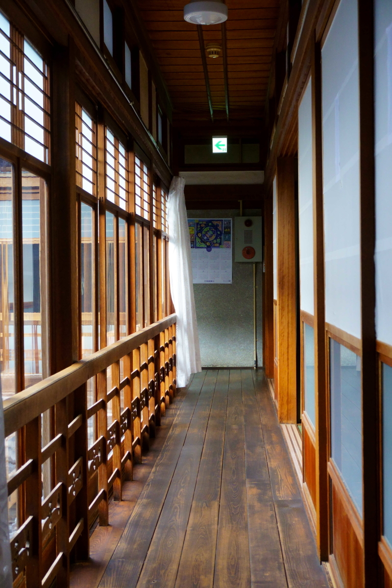 レトロなガラスがはまった廊下に心が躍り、滞在中何往復もした。