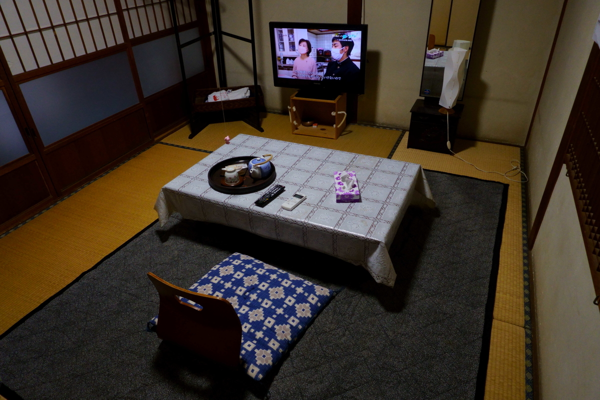 2階の奥の部屋に通された。この日はとても寒かったため、冷えなかったか心配された。いつでもお風呂に入れるし、冬用の布団と暖房で快適だった。こういう旅館に着くと、テレビを付けられ勝手にこの状態になる。