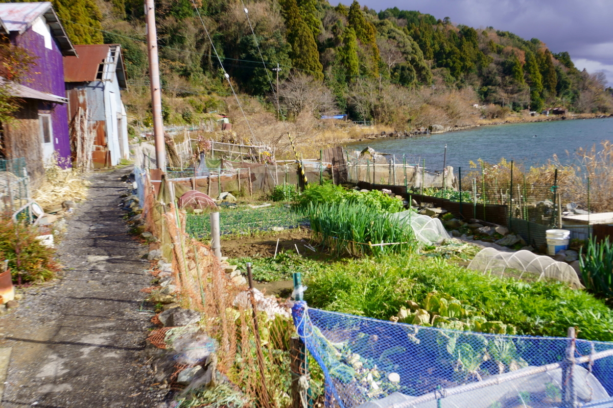 沖島の特徴と言えば、畑と湖の近さだ。普通の離島は、畑は海からある程度離れたところに置かれていることが多い。しかし、ここは淡水湖。水際に畑があり、様々な作物が栽培されている。商店がない沖島で、自分で野菜を育てるのは重要なのだろう。