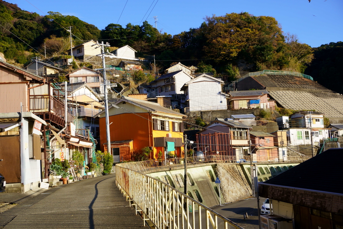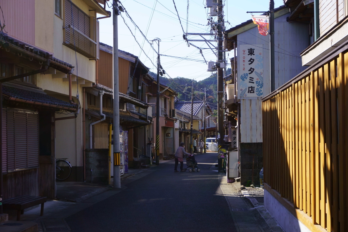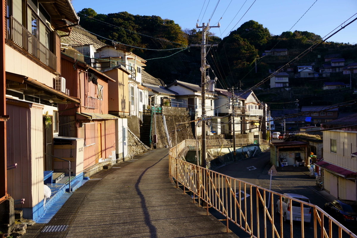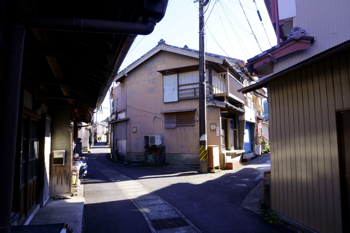 町内を歩くことにする。漁港によくある海と山に挟まれた平地に民家が密集している。海岸線と平行にある程度太い通りが、垂直に比較的細い通りが並び家々をつなぐ。この地域では細い通りを「合い」というらしい。