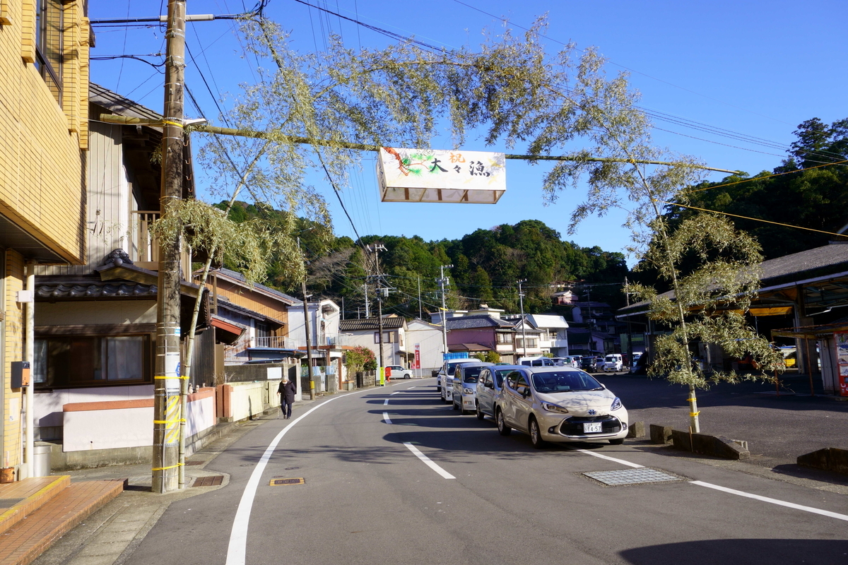 おもしろかったのは晦日に訪問したため、至る所に正月の飾り付けがされていたことだ。名前がわからないが、街中に「大々漁」と書かれた飾りが竹で吊るされていた。さすが漁村である。船にももちろん大漁旗が取り付けられていた。