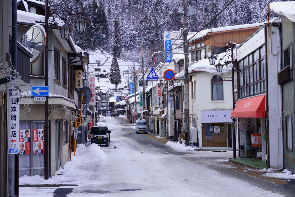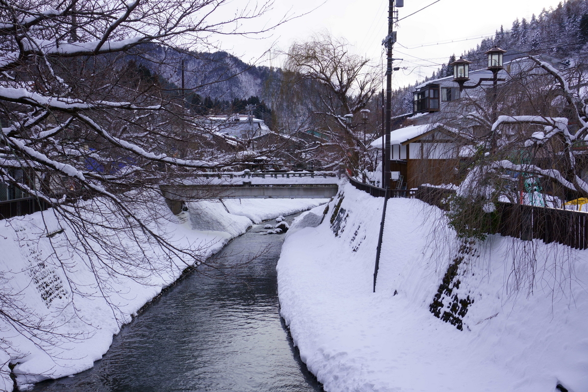 神岡の中心地は山田川の左右で雰囲気が異なる。右側は生活必需品を売っているような商店や喫茶店が並んでいる。一方で左側には遊郭跡や料亭が並んでいる。
