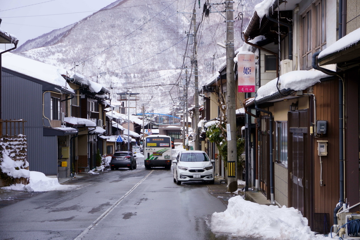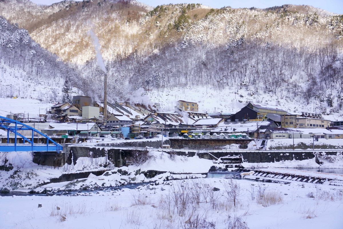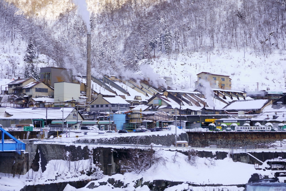 街を北へ歩くと神岡鉱業の工場が見えてくる。雪の中、煙突から煙を出して稼働している姿は大きな生き物のようだ。