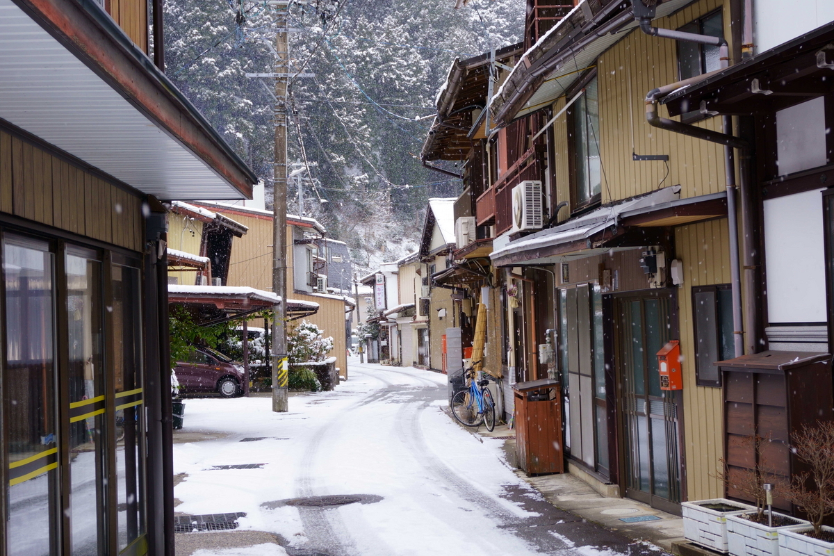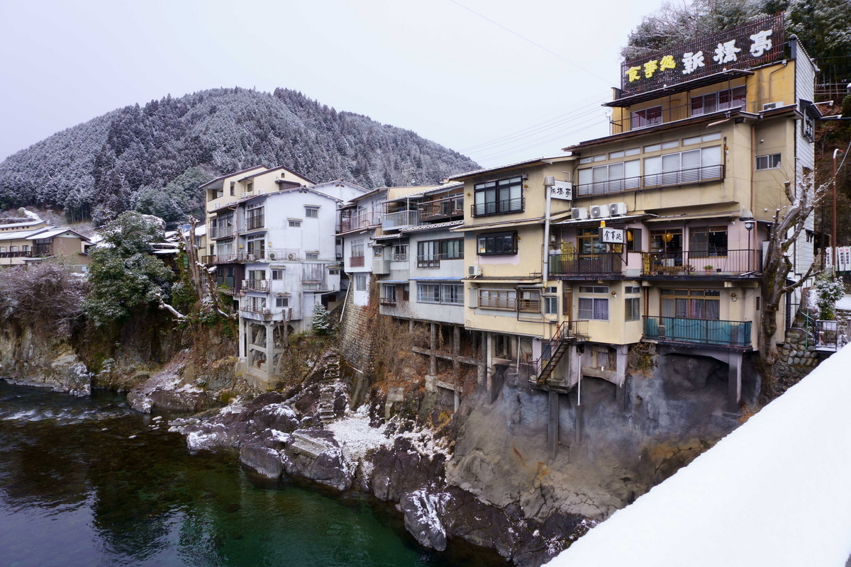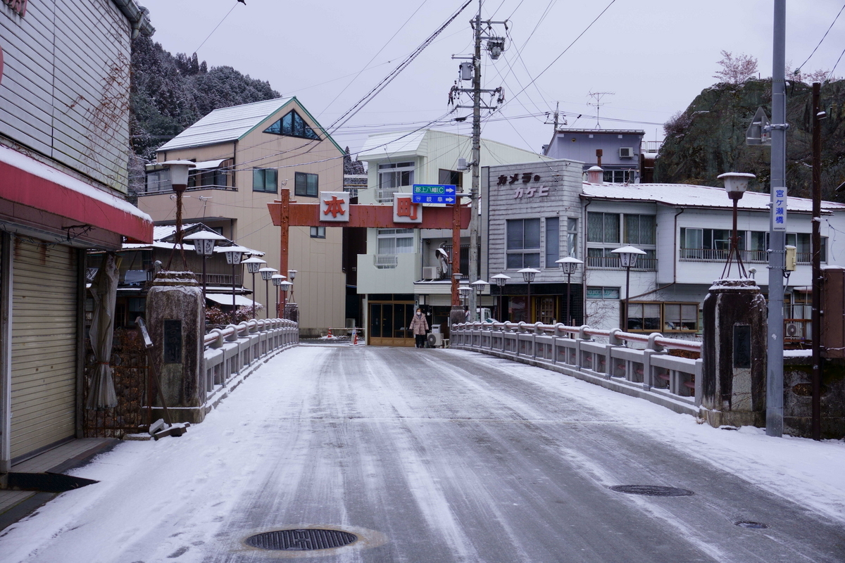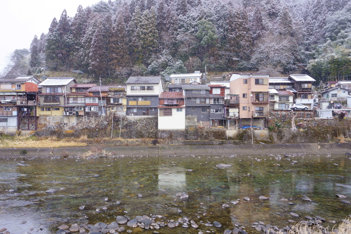 川沿いには四国のような光景が広がっている。雪が積もっていることに違和感を覚えてしまう。