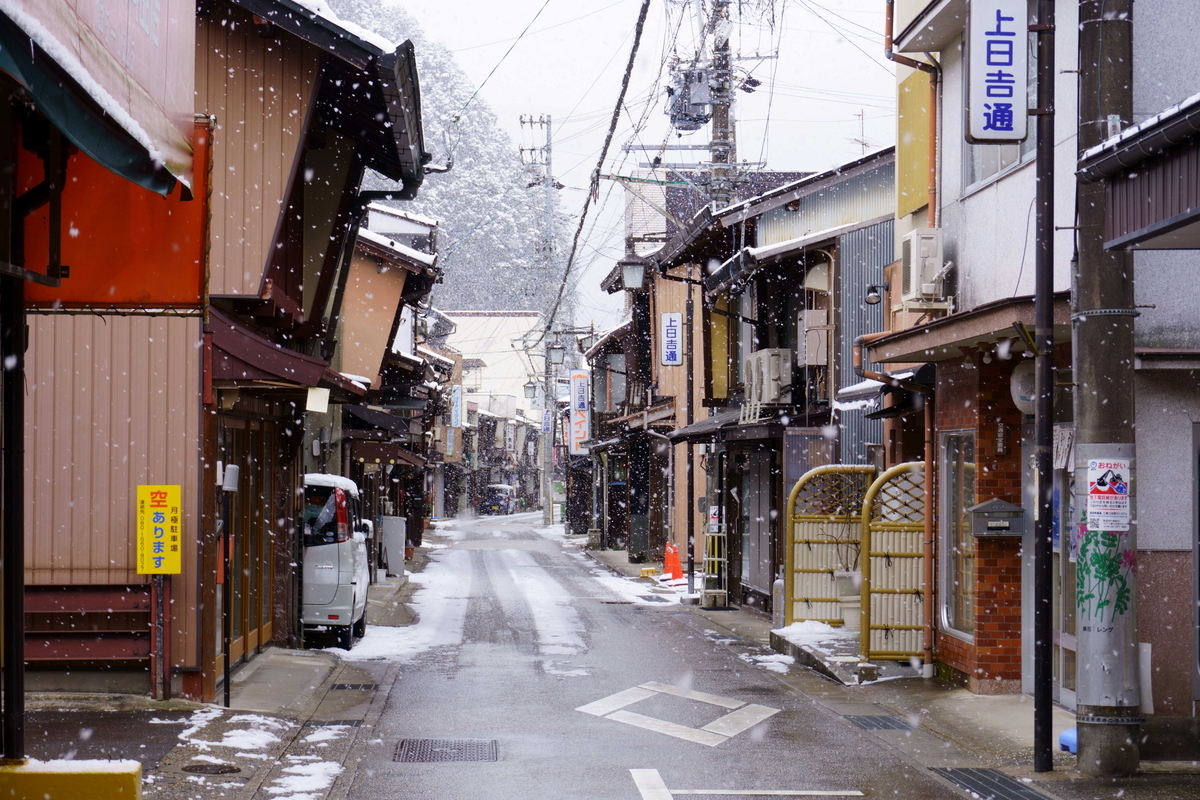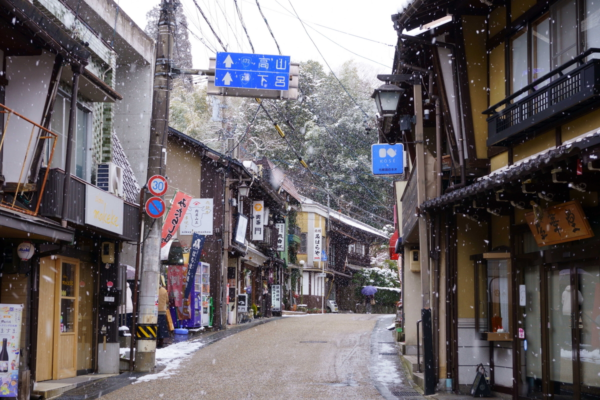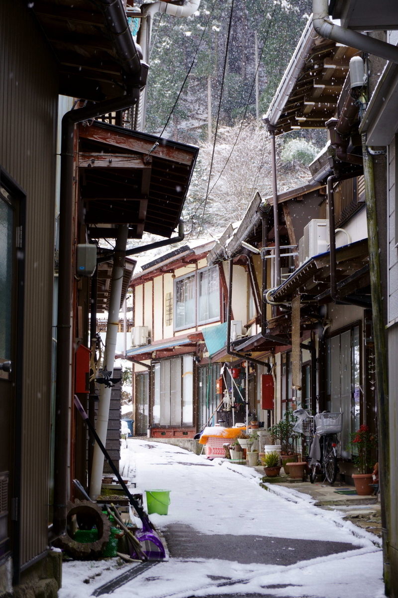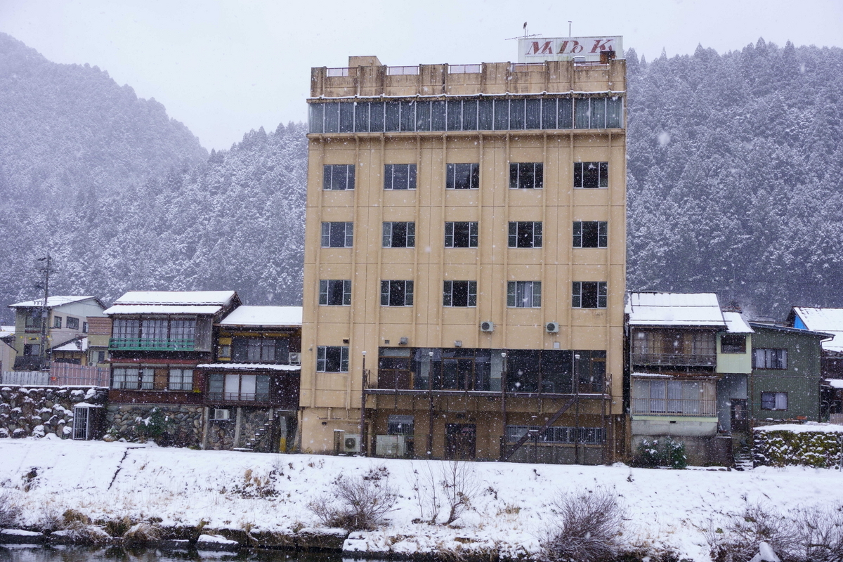 川沿いには四国のような光景が広がっている。雪が積もっていることに違和感を覚えてしまう。