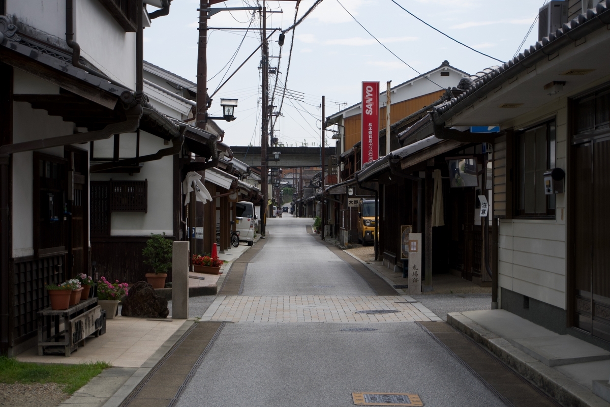 駅前から江戸時代の商家が残されている地域まで商店街を通る。