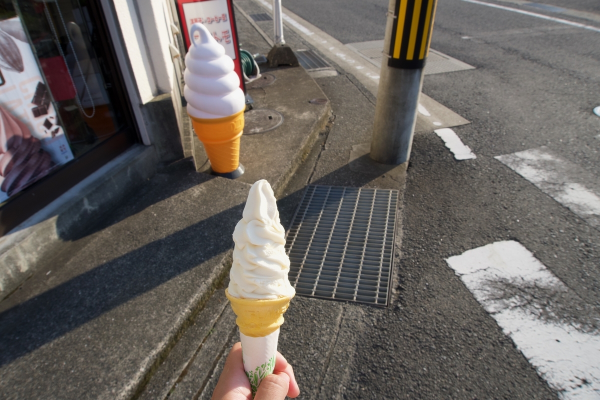 バスの都合上、滞在時間は30分と限られていたため、町の洋菓子屋でソフトクリームを買い、食べながら町を撮影した。