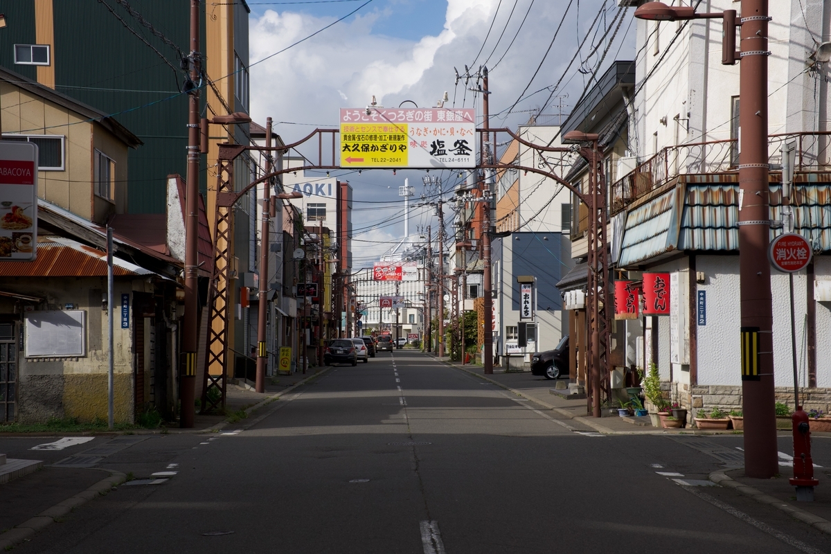 室蘭駅前すぐに商店街がある。かなり立派な商店街だが、シャッターがおりている店が多い。