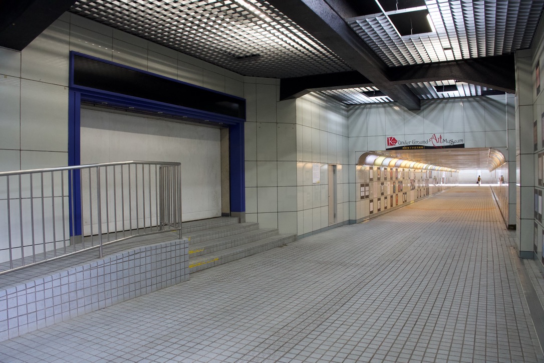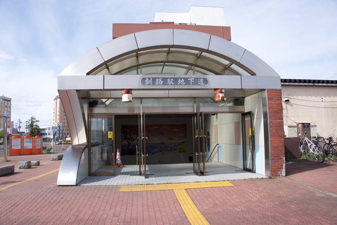 次に動画でも紹介されている釧路駅の地下街跡に向かいました。確かに階段を降りると地下通路の壁に不自然なシャッターがある。昔はここが地下街の入り口だったらしいです。
