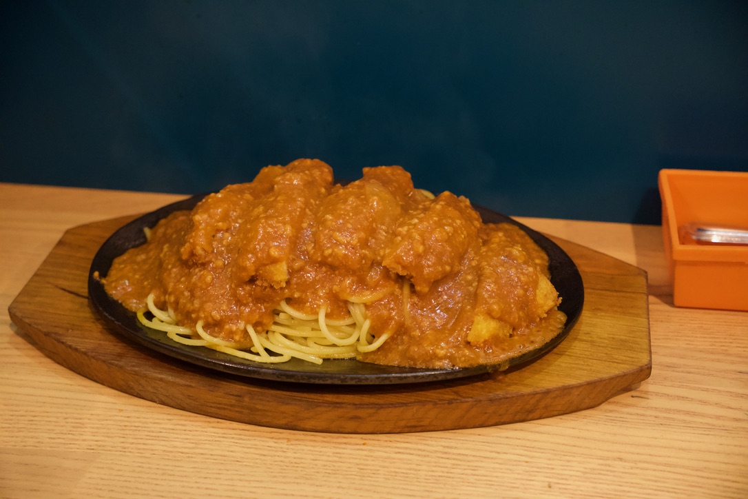 ミートソーススパゲティ+とんかつのスパカツを食べました