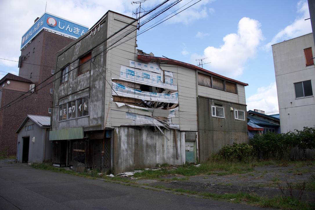 街を歩くと自然と廃墟が出てくるのが北海道という感じ。昔は栄えていたことがわかります。