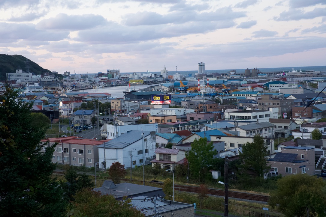 南稚内駅近くの高台から街を見下ろす