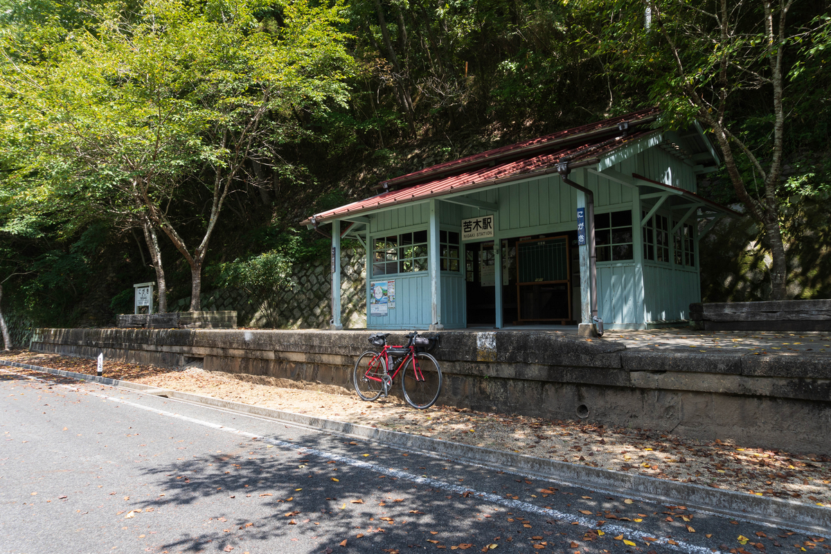 サイクリングリードには当時の駅舎やトンネルが残されています。休憩がてら駅舎に寄り写真を撮っていました。道は鉄道路だけあって線形もよく、坂も少ないので走りやすい。