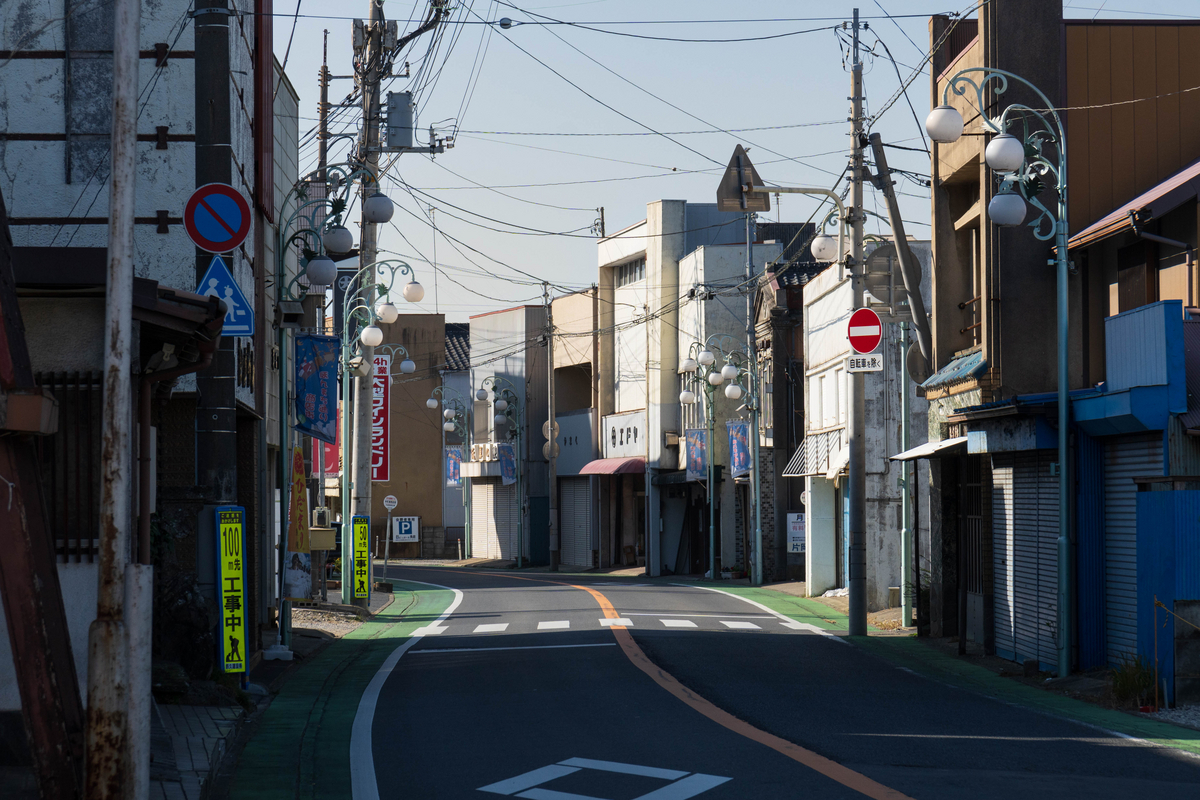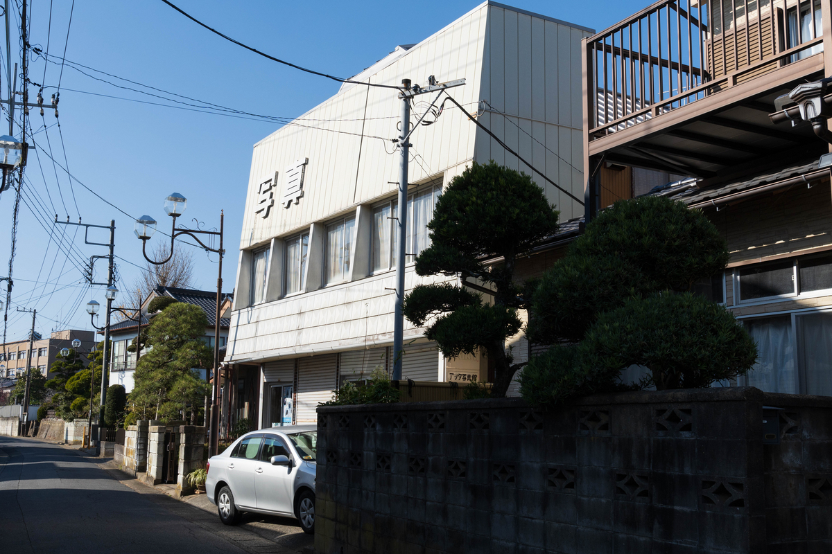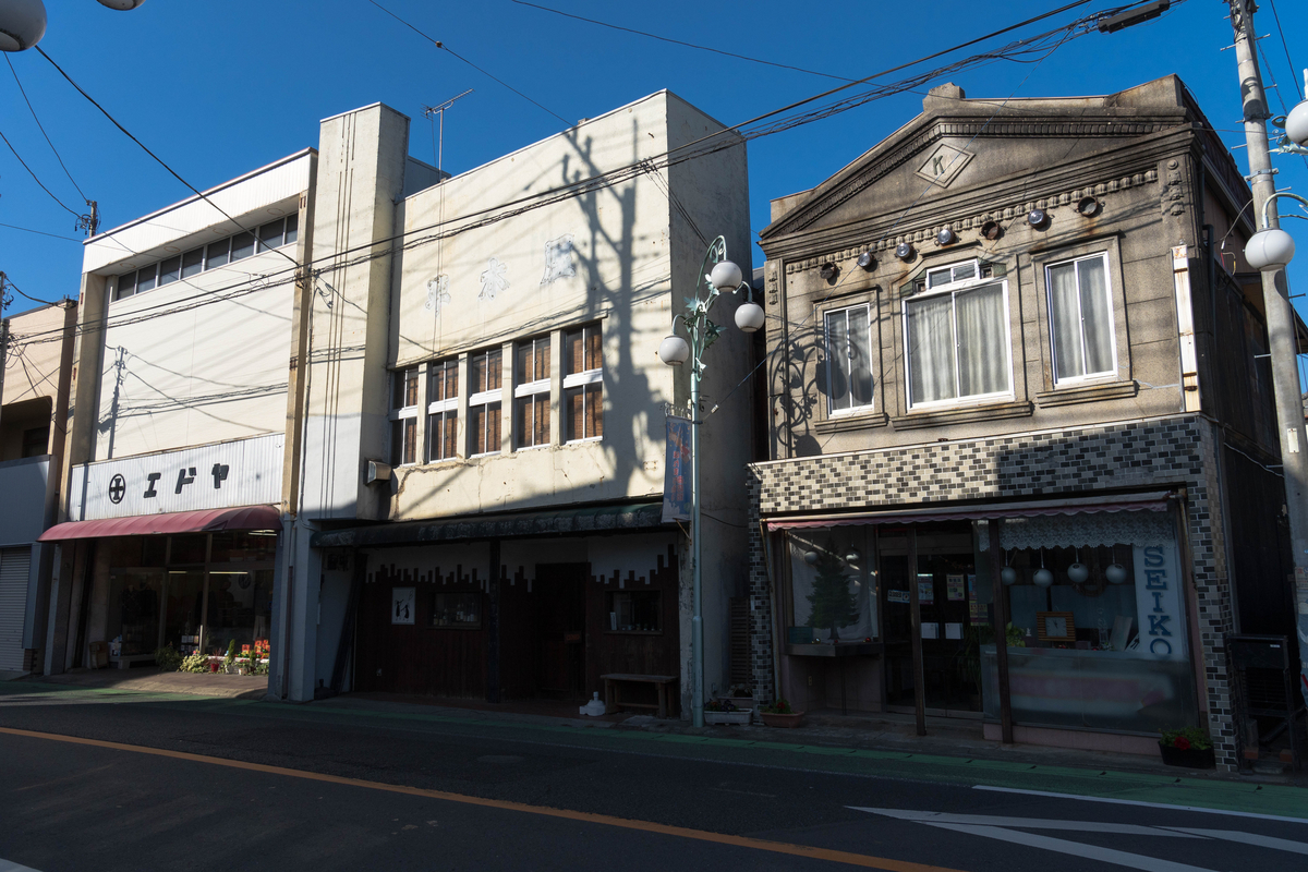 今までは東側を散策しましたが西側に移動します。こちらの方が昔からの建物が残っていました。看板建築の商店が所々で見られます。