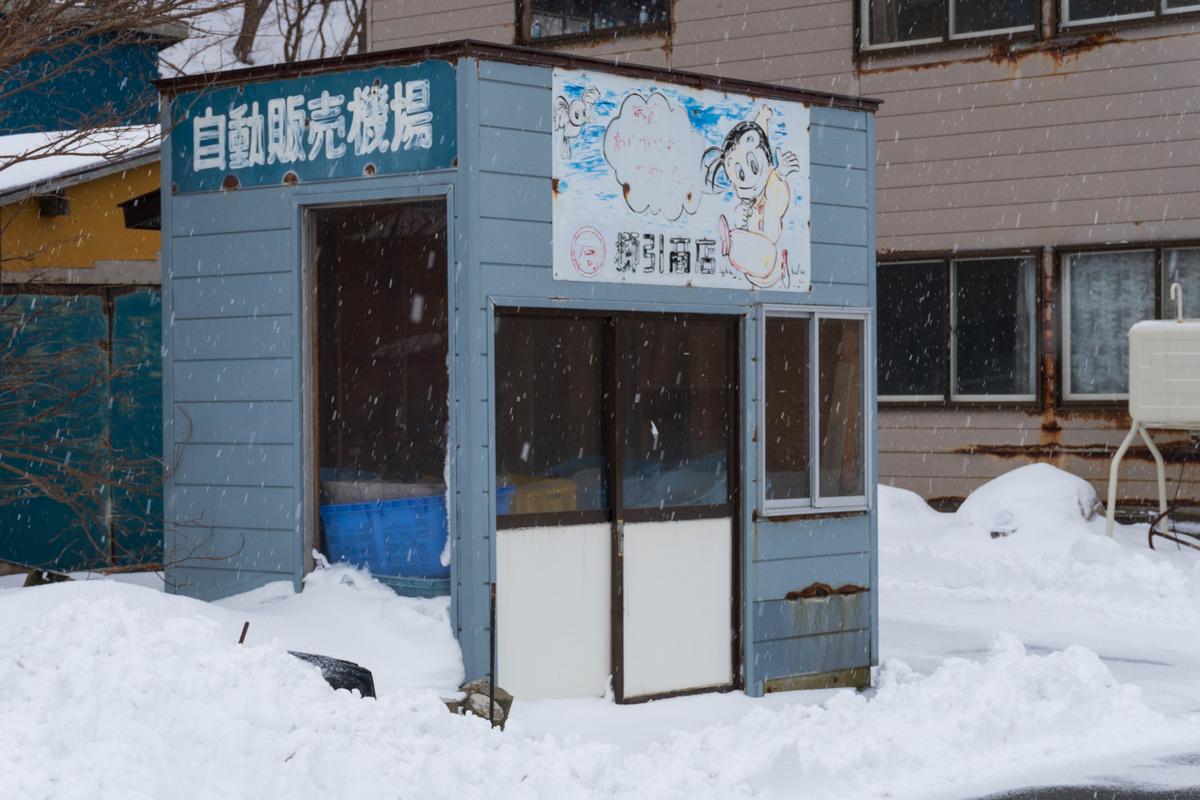 シャッターの「忘れないで」の文字が物寂しい