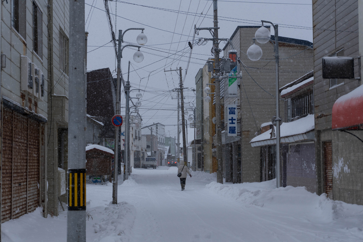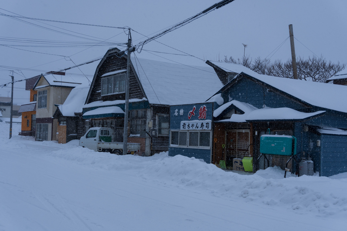 バスまで時間があったので増毛の町を歩きます。外を歩いている人はほぼいないので否応なく目立ちます。