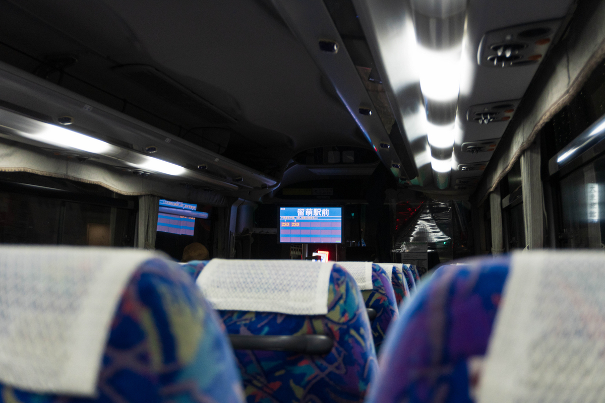 増毛駅跡に戻りバスで留萌に向かいます。増毛駅では駅名板の前で男性に写真を撮ってほしいと頼まれました。「増毛」を願う上司に送るそうです。