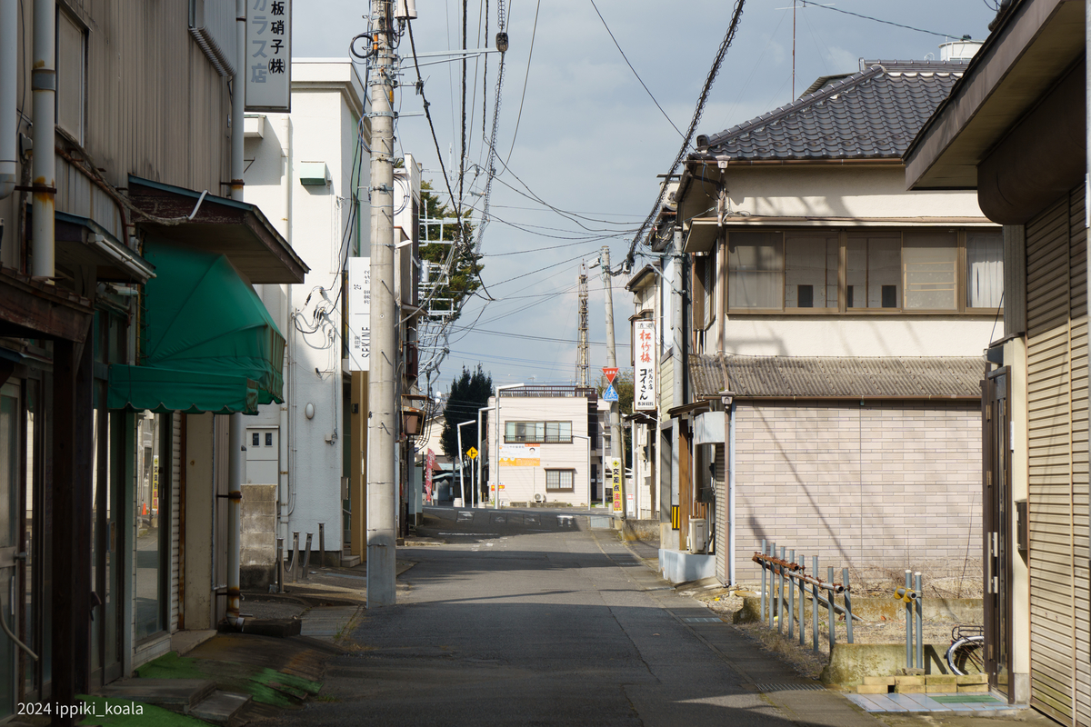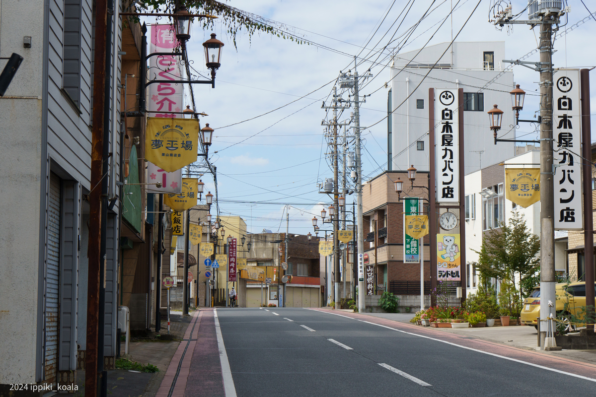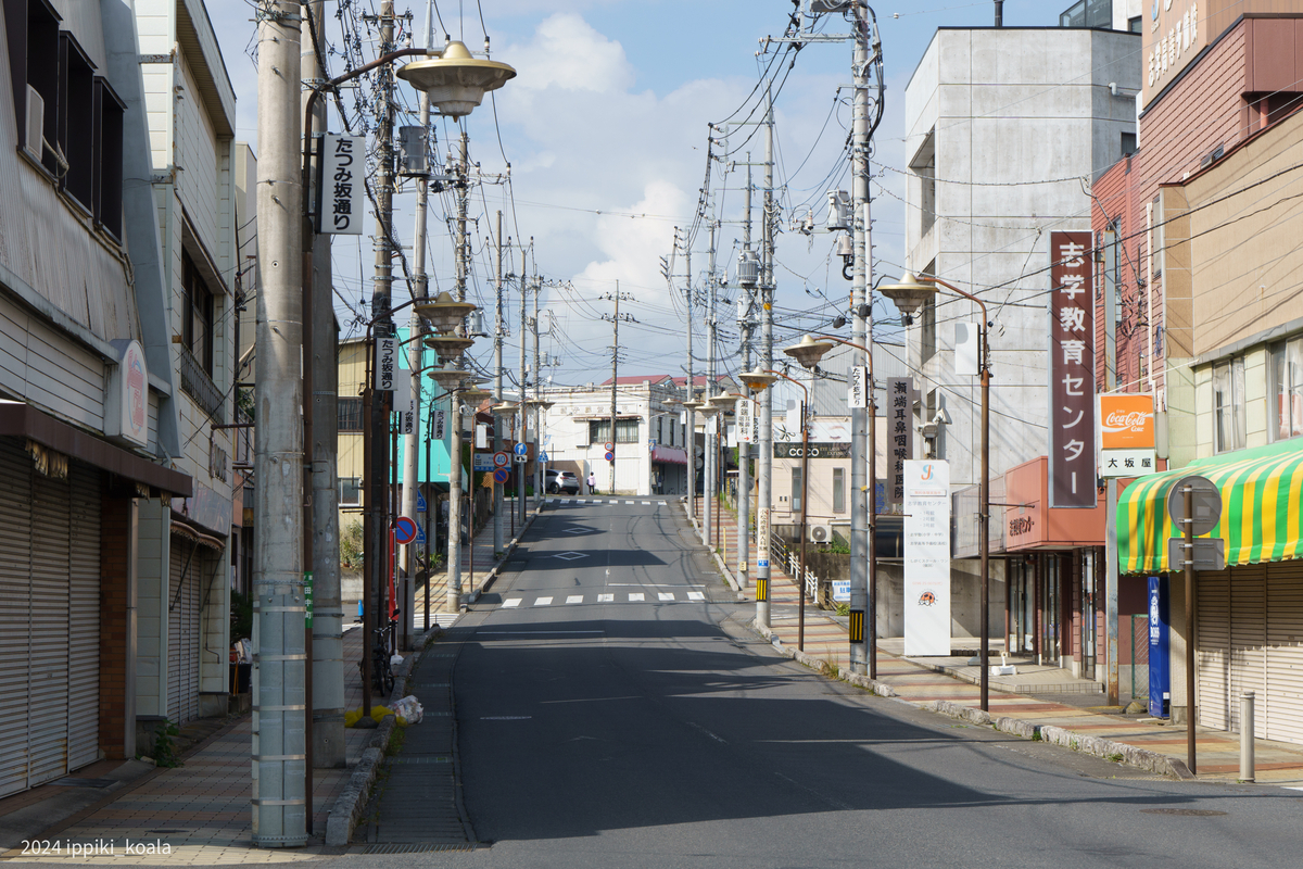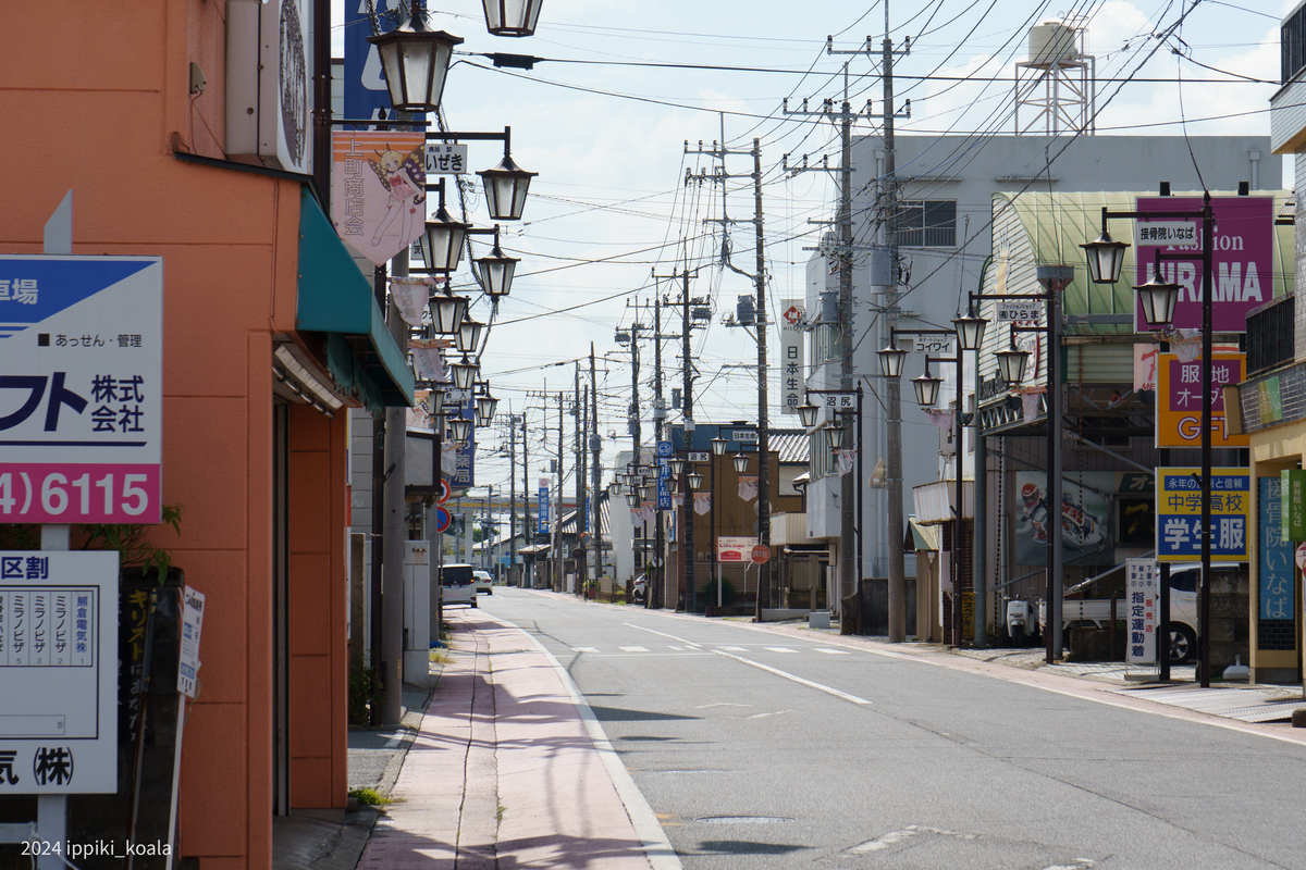 駅前から北に伸びる旧道となった商店街を歩きます。