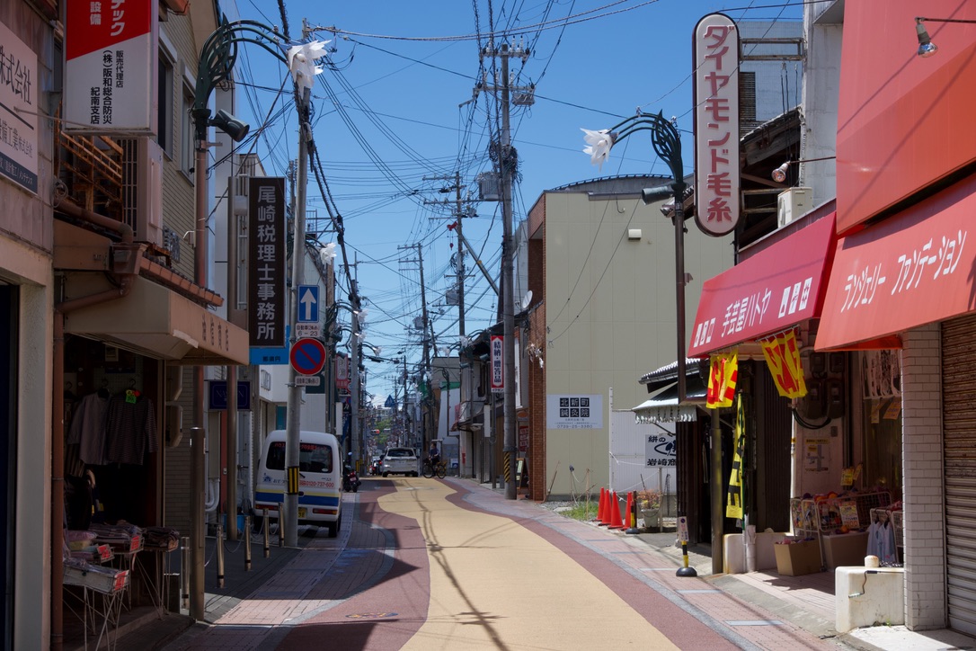 駅前のスナック街を抜けると商店街があります。こちらは道幅もまあまあ広く普通の街の個人商店が並びます。和歌山には多い気がするレトロな電灯がかわいい商店街です。