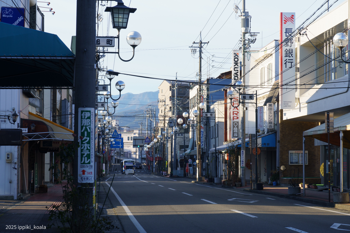 木曽福島に向かう電車の時間が迫っていたので伊那市駅に向かいます。伊那市はとにかく山が美しかったです。雄大な山とごちゃごちゃした街並みがたまりませんでした。