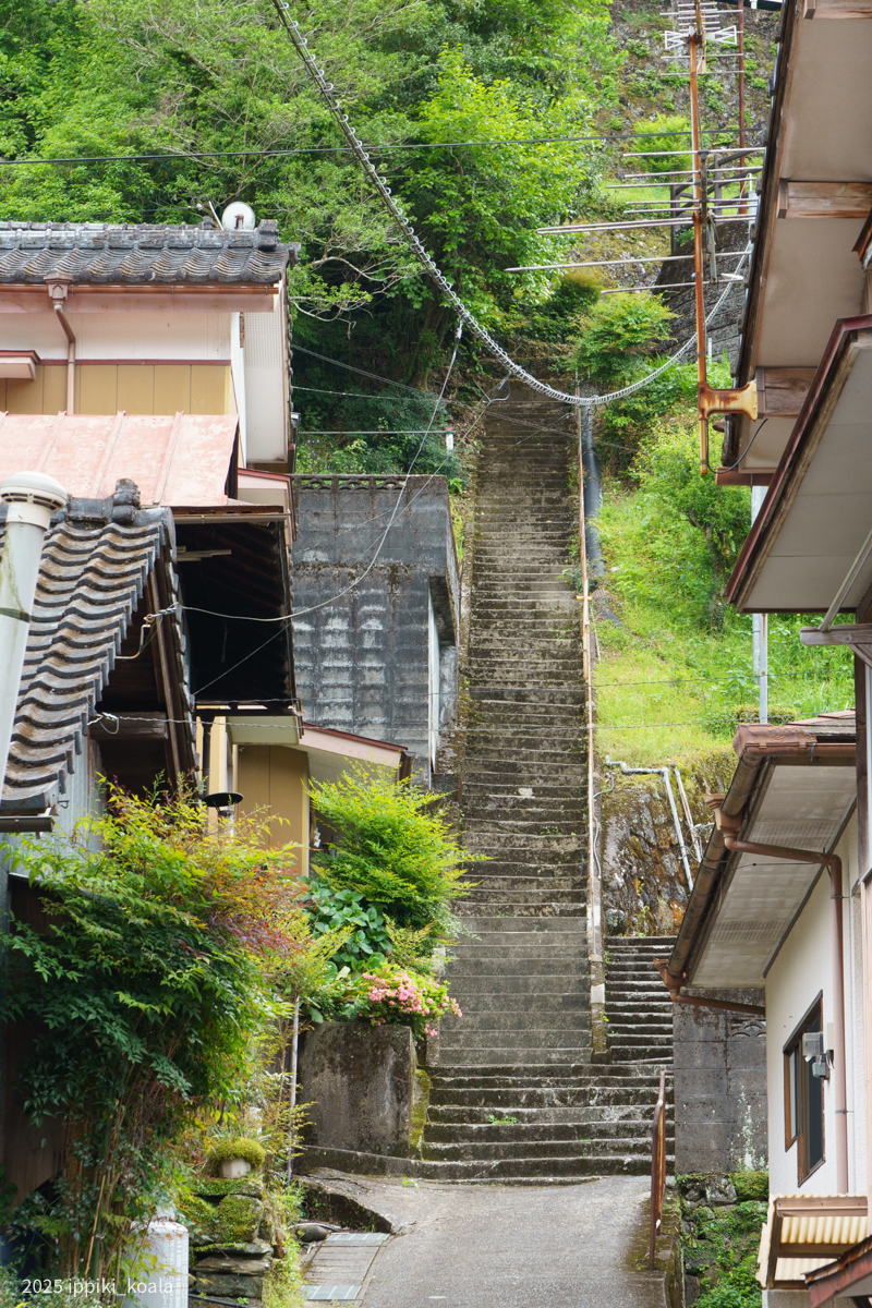 山と川の間に作られた集落なので階段も多いです。狭い土地を有効利用とした後が見られます。