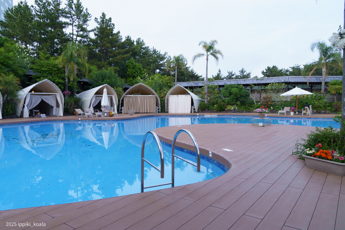 チェックインしてすぐにひなあいのオープニングを撮影したプールへ。富田さんが寝ちゃった椅子もありました