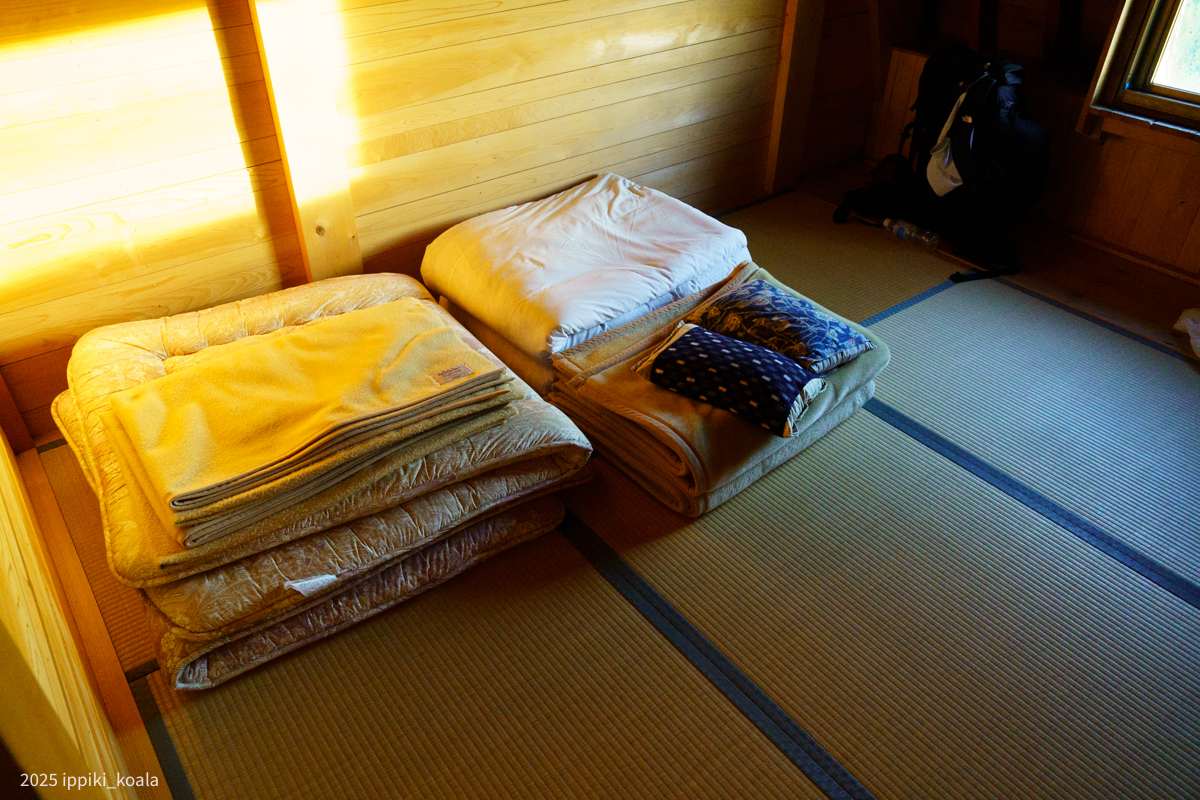 名前の通り山頂にある山小屋。友人が電話予約してくれました(受付の人となぜか仲良くなっていた謎)。夕飯・朝食もいただくことができ、季節によっては風呂に入れる時もあるらしい。個室もたくさんあり、数人で行けば個室になるのかな...?1人で行った人たちは相部屋だったらしい。