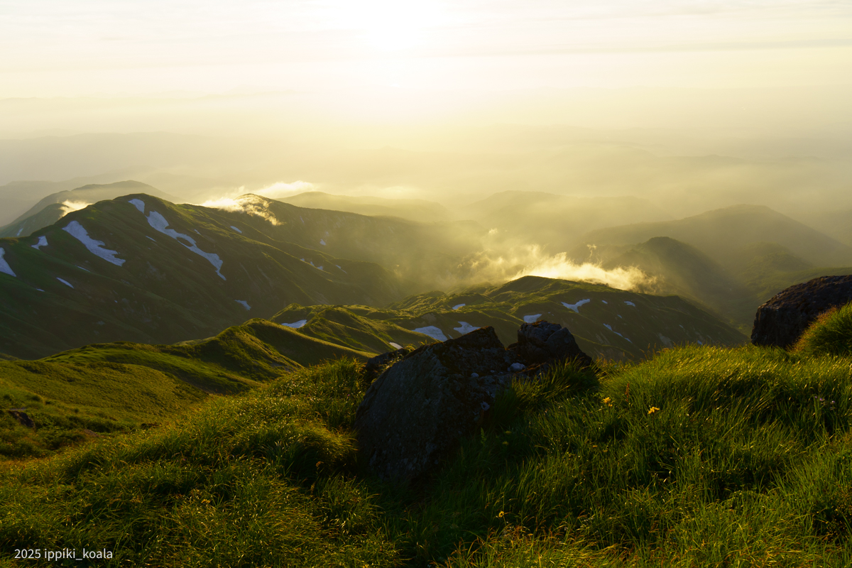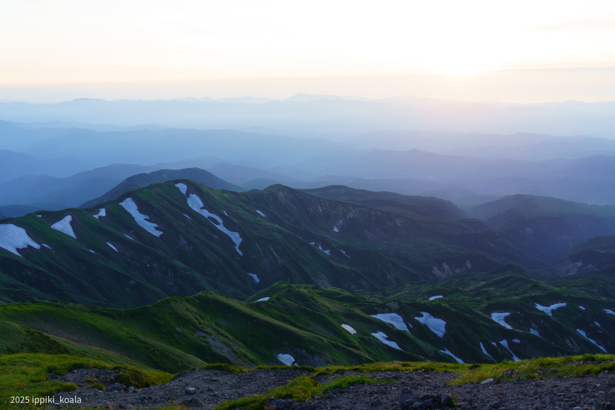 5回くらい言っている気がしますが、月山で日没の時間を過ごせるのは山小屋に泊まったから。こんな天気がよかったのはとても運がいいですね。