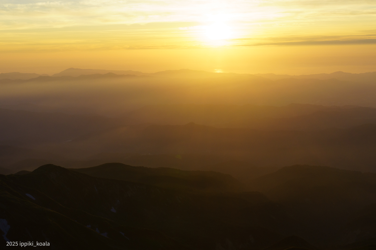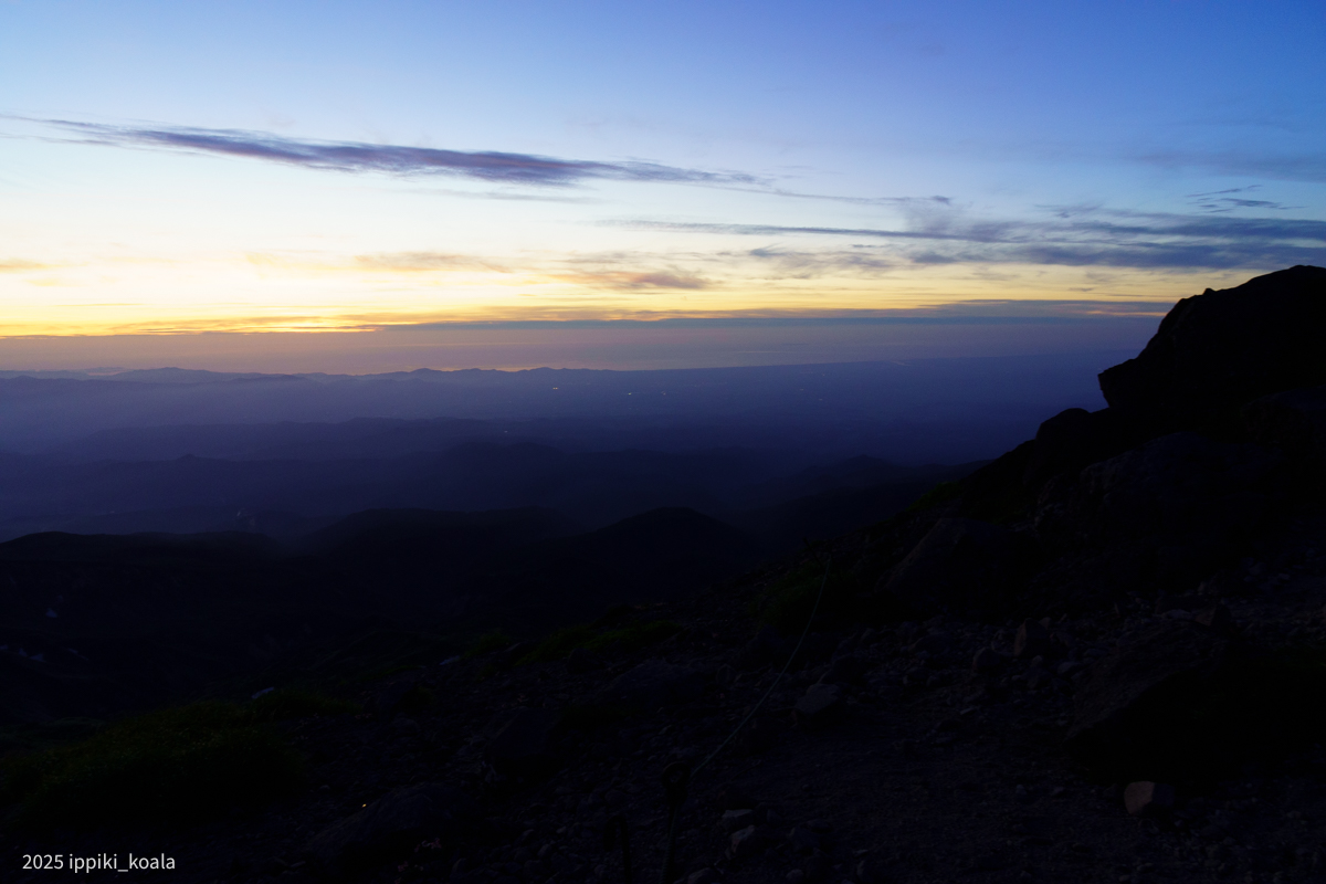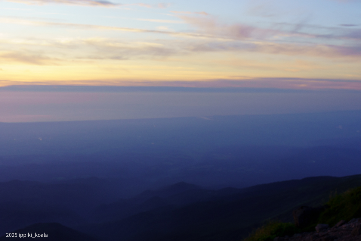 たまたまかもですが、夕方〜翌日の朝にかけて月山の山頂付近はほぼ快晴でした。山小屋に宿泊した我々は景色を思う存分堪能できました。山小屋に宿泊しなかったら見れていなかったので、月山山頂小屋はいいぞ〜という話