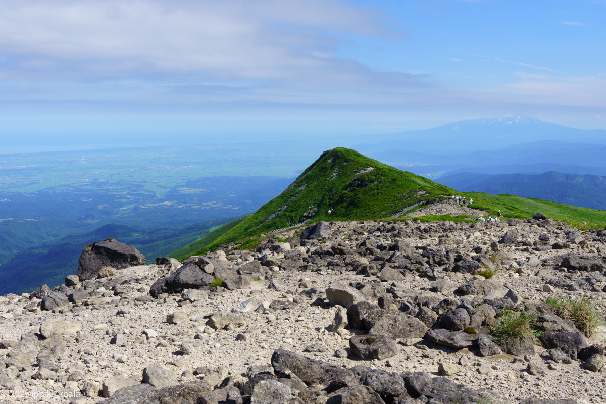 向こうには鳥海山が見える。人気すぎてこの3連休には登山客の渋滞が起きていたらしい
