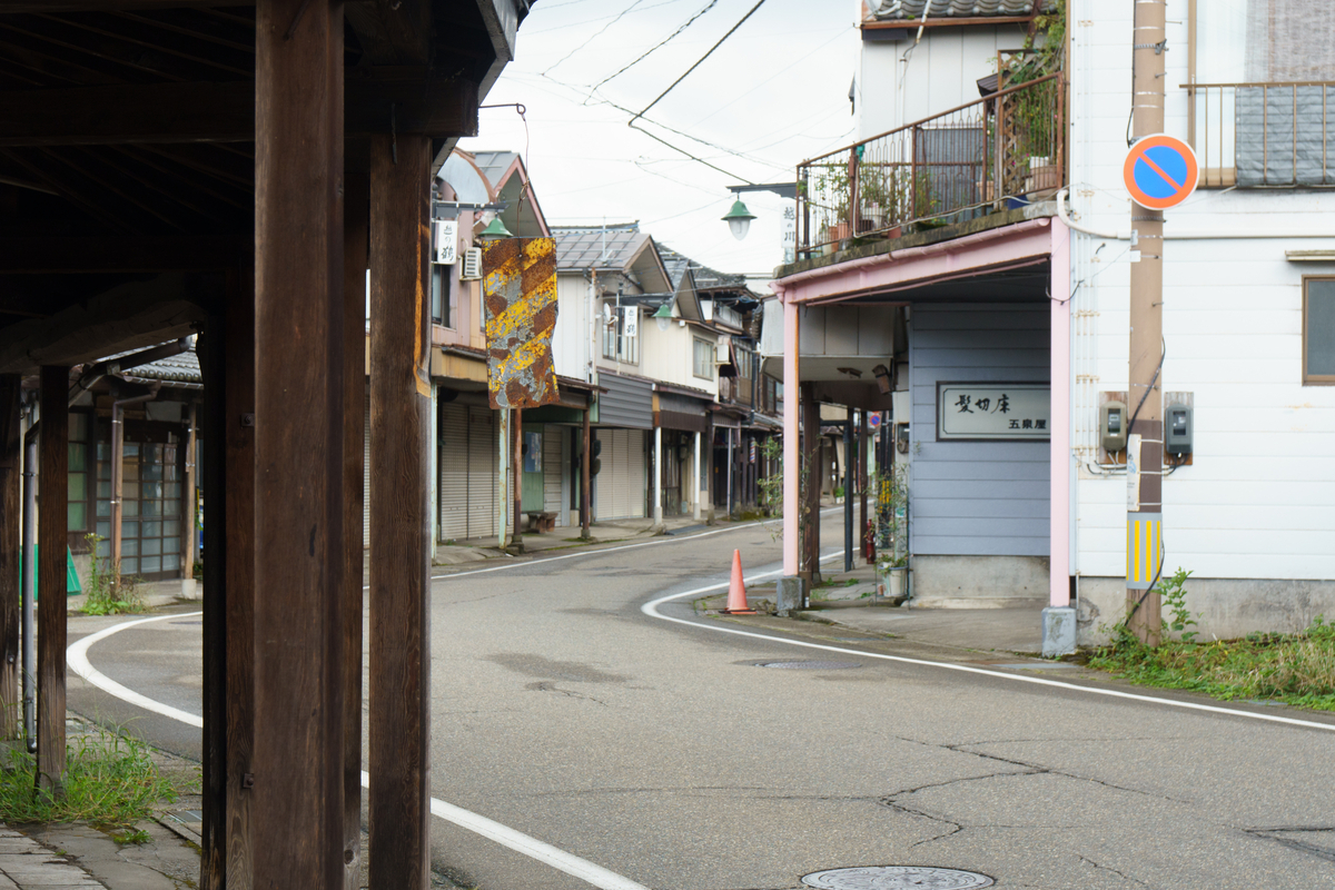 新町は昔ながらの雁木通りの中にカフェのような比較的新しいお店があるようなところ。車通りや人通りは少なかったです。