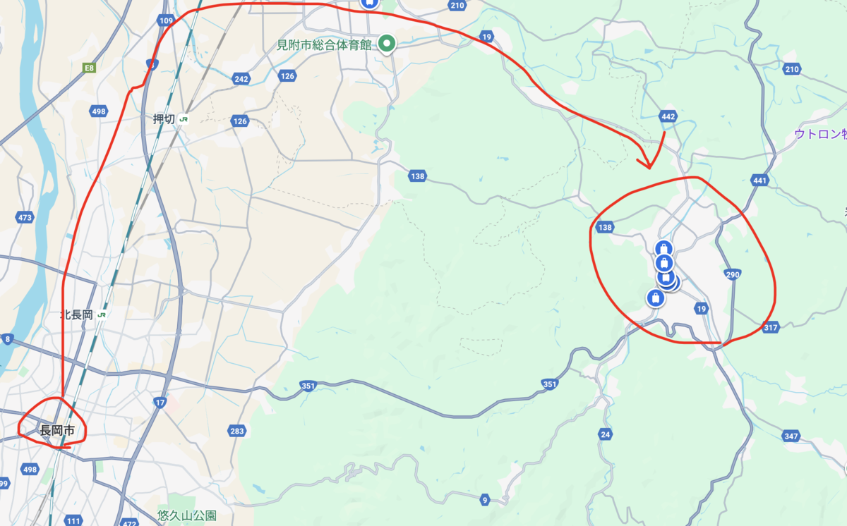 東京〜長岡が1時間半くらいなので、うまく乗り継げは2時間半で行ける意外と近い場所にあります。東京長岡は新幹線で8000ポイントで行けたのでJREポイント富豪の私にとっては余裕。