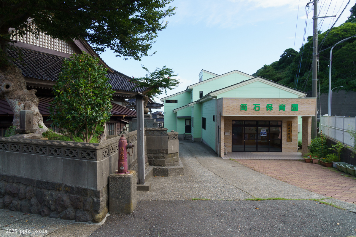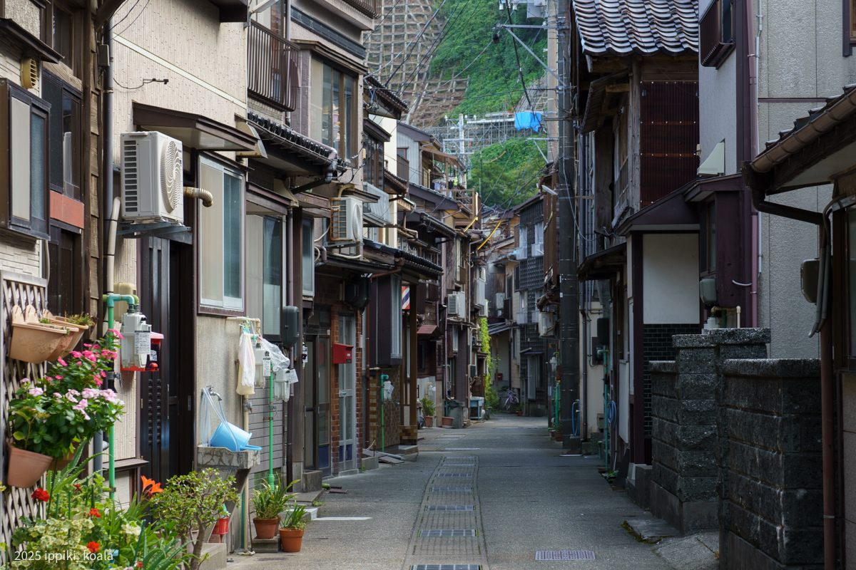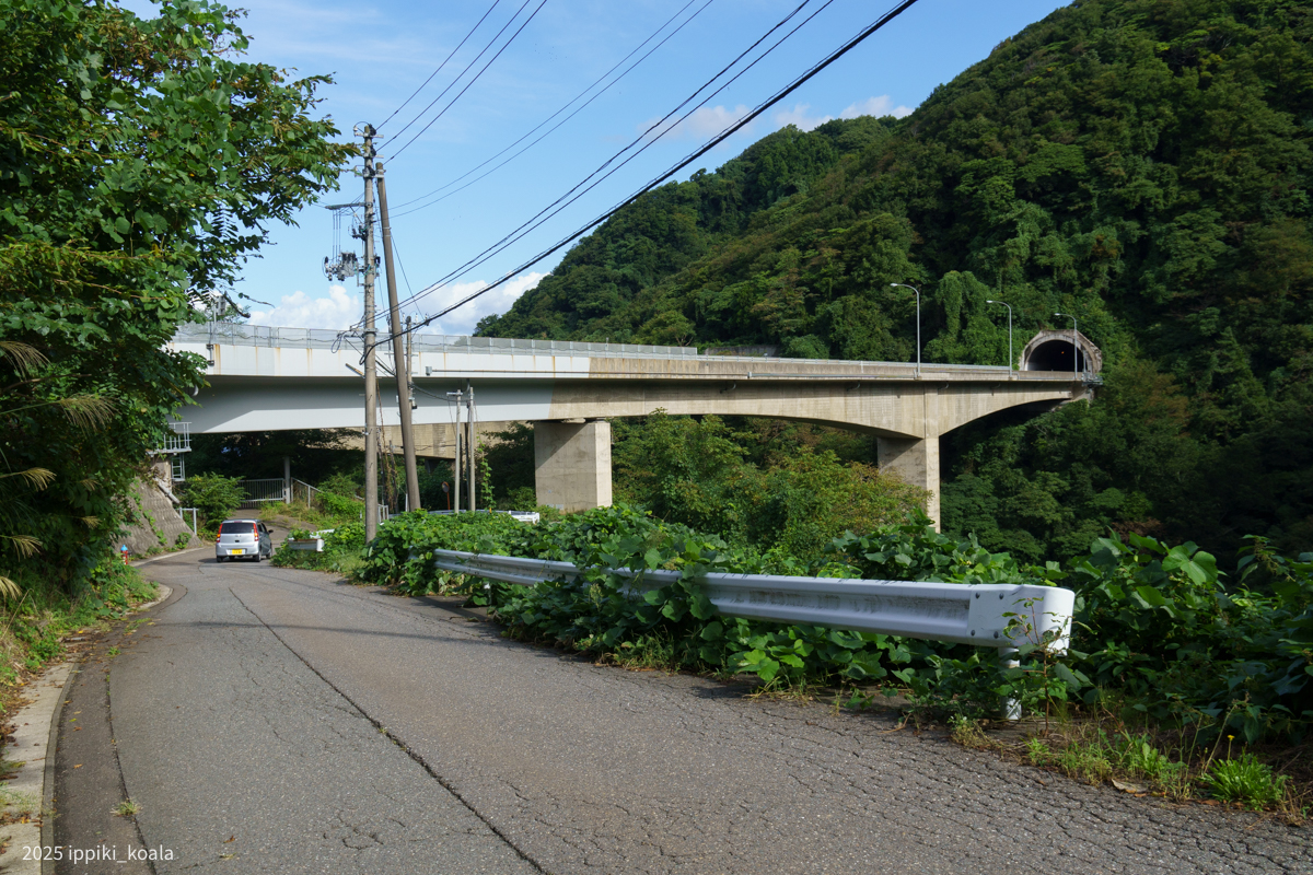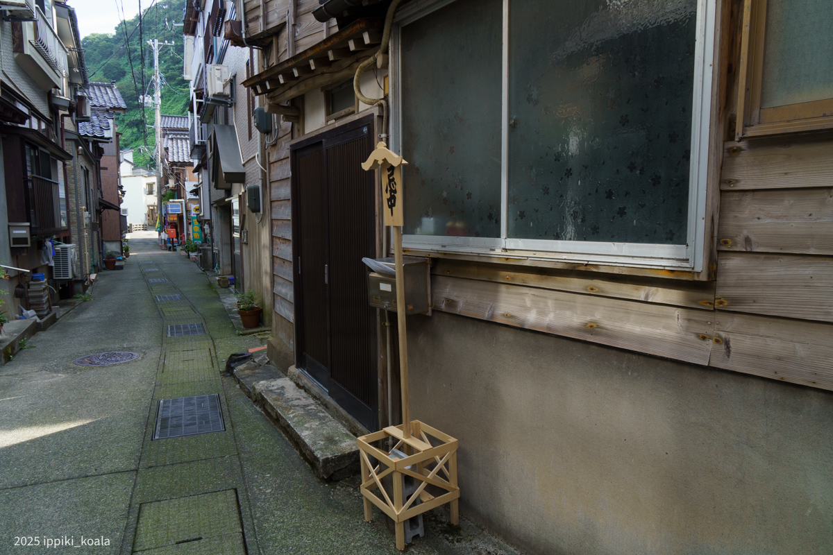 狭い曲がった一本道に家が立ち並んでいる様子がひたすら続いているのが筒石の特徴です。山側はすぐに高台になっており家一軒分しかスペースがなさそう。そのため、魚損にありがちな家と家の間の細い路地はあまり見られませんでした。