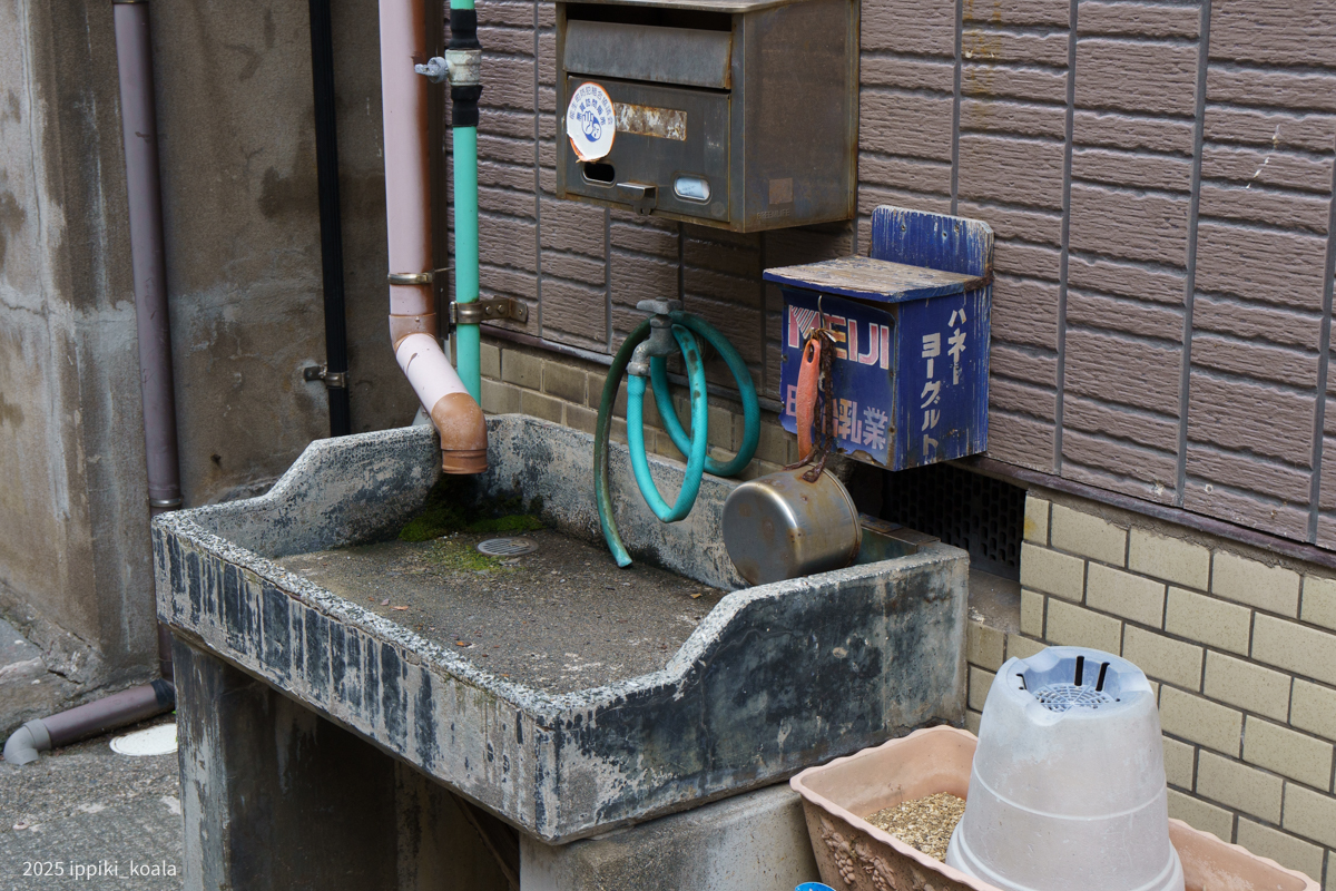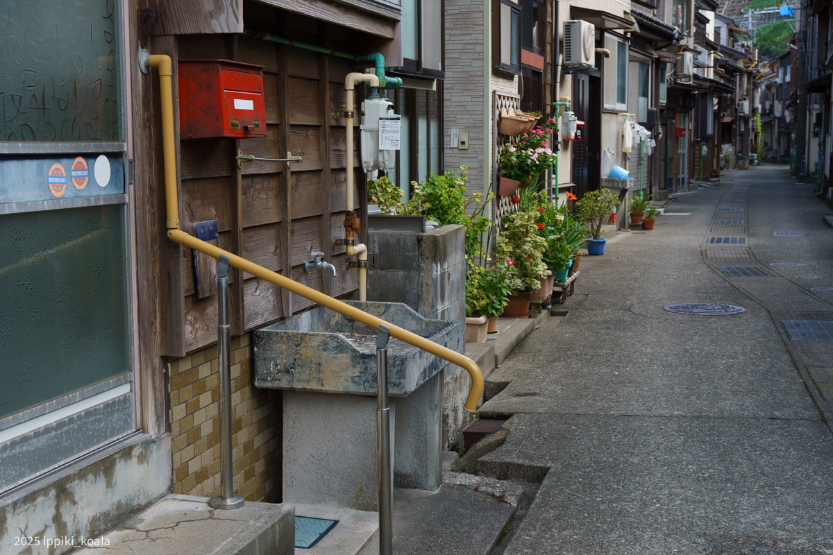 多くの家の軒先に水場があるのが特徴でした。この水場は魚をさばくためのものらしい。