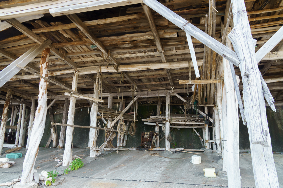 舟屋といえば伊根が有名ですが、ここにもあります。ほとんど船は置かれていなく使われていない様子。