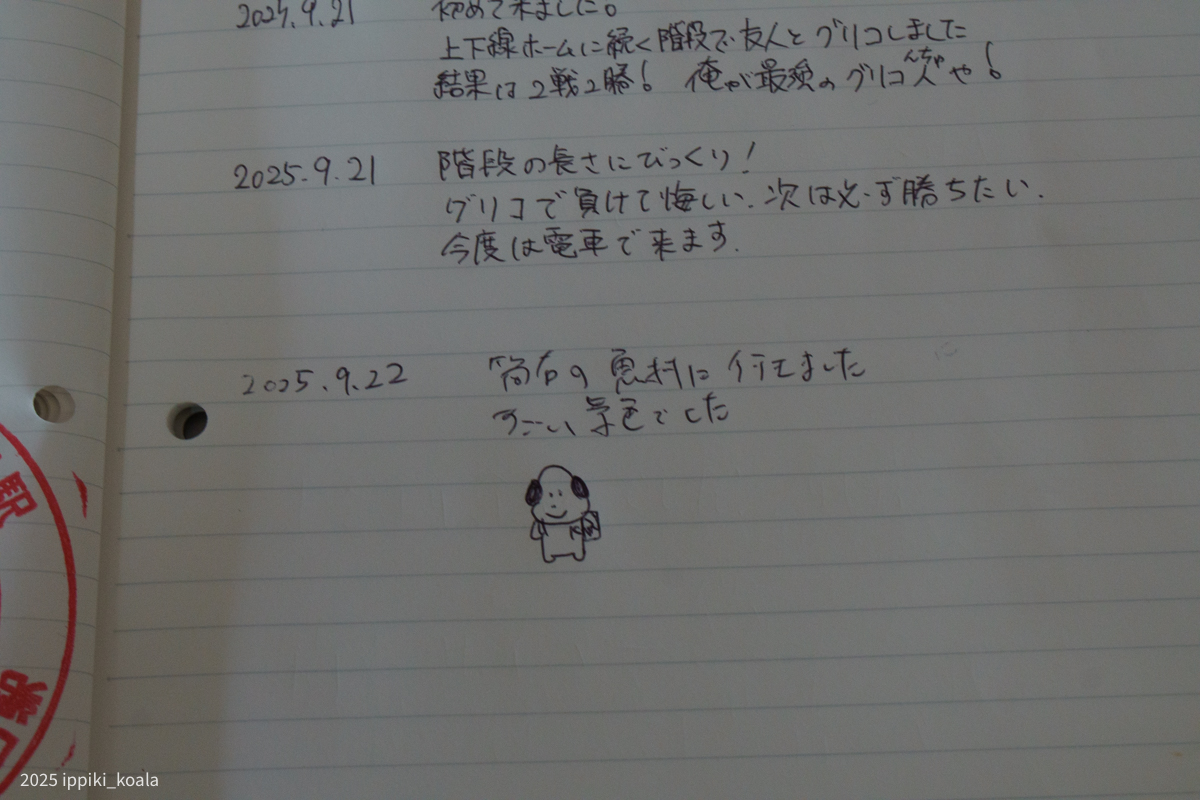筒石駅に戻りました。駅舎にはノートが置いてあり、駅目当てで来ている人もいるよう。