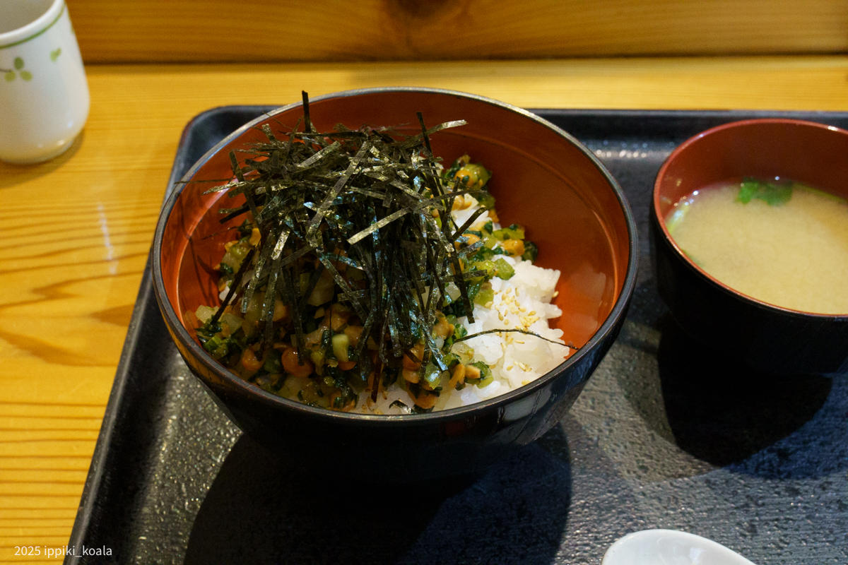 直江津から六日町に行ってきりざい丼を食べました(納豆やのざわな、たくあんを切り刻んで載せたもの)