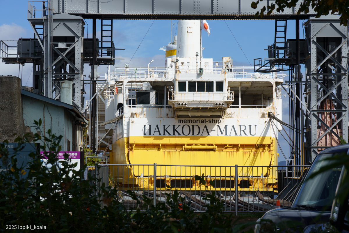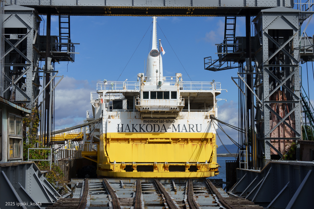 こんなでかい船が駅のすぐ近くにあるのも驚きだけど、船に向けて線路が伸びているのがさらに驚きポイント。青森駅からは主に貨車が船に積み込まれ、そのまま函館で降ろされ北海道の鉄路を走ったようです。