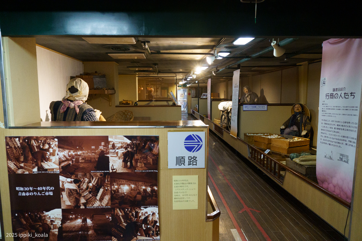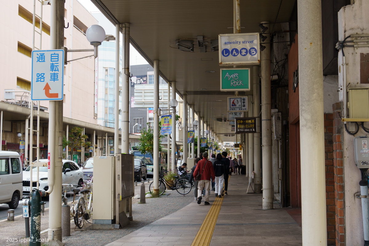 青森ベイブリッジを降りて駅周辺のアーケードに向かいます。かなり範囲が広く人も多い。青森らしくところどころにりんご屋があったり(口コミ悪い)、煮干しラーメンのにおいがします。