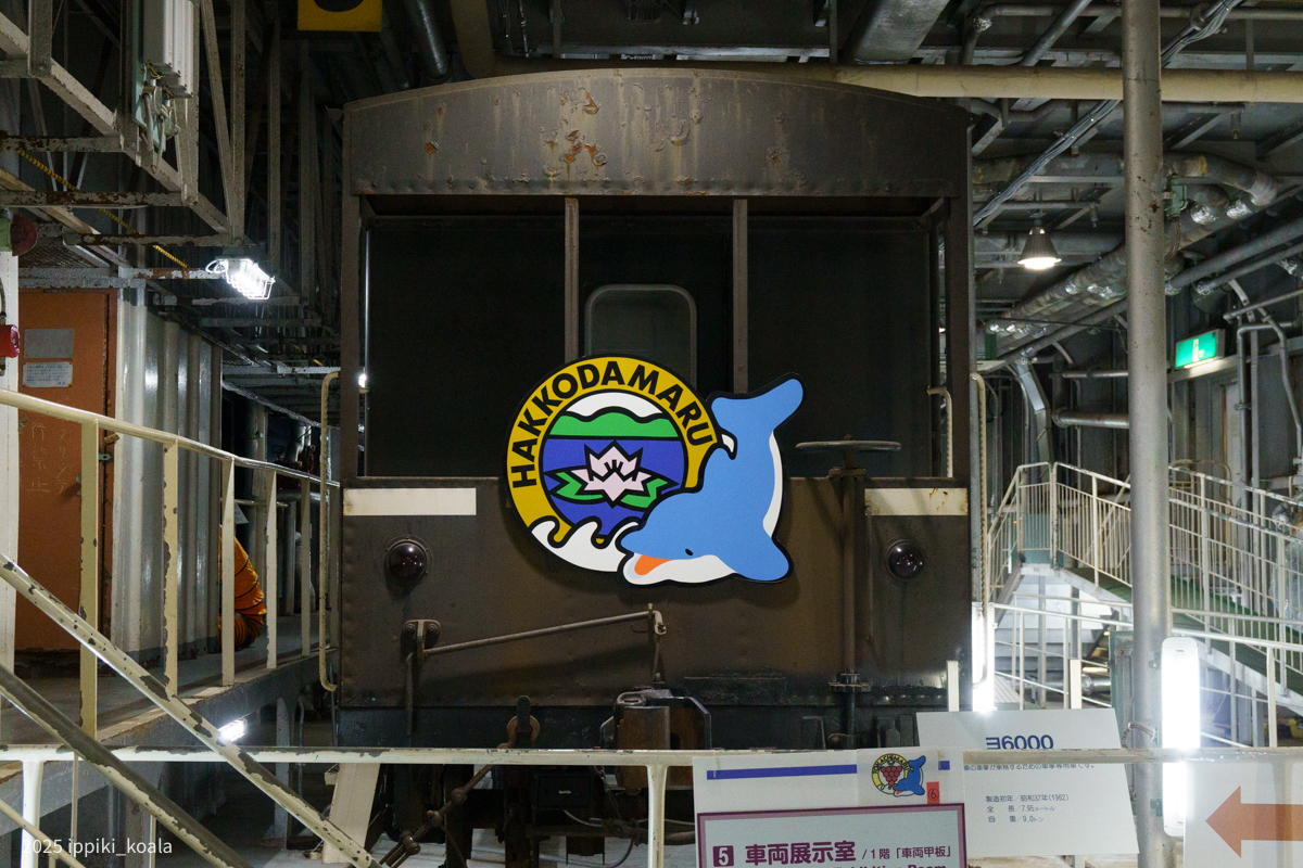 やはり衝撃だったのは車両甲板。今も列車が置かれています。基本的に貨車を積み込んでいたようですが、本州で作った車両を北海道に送り込むためにも使われたそう。
