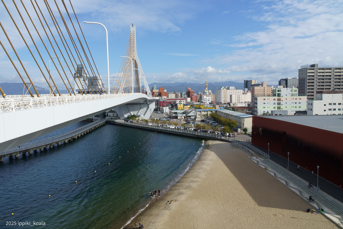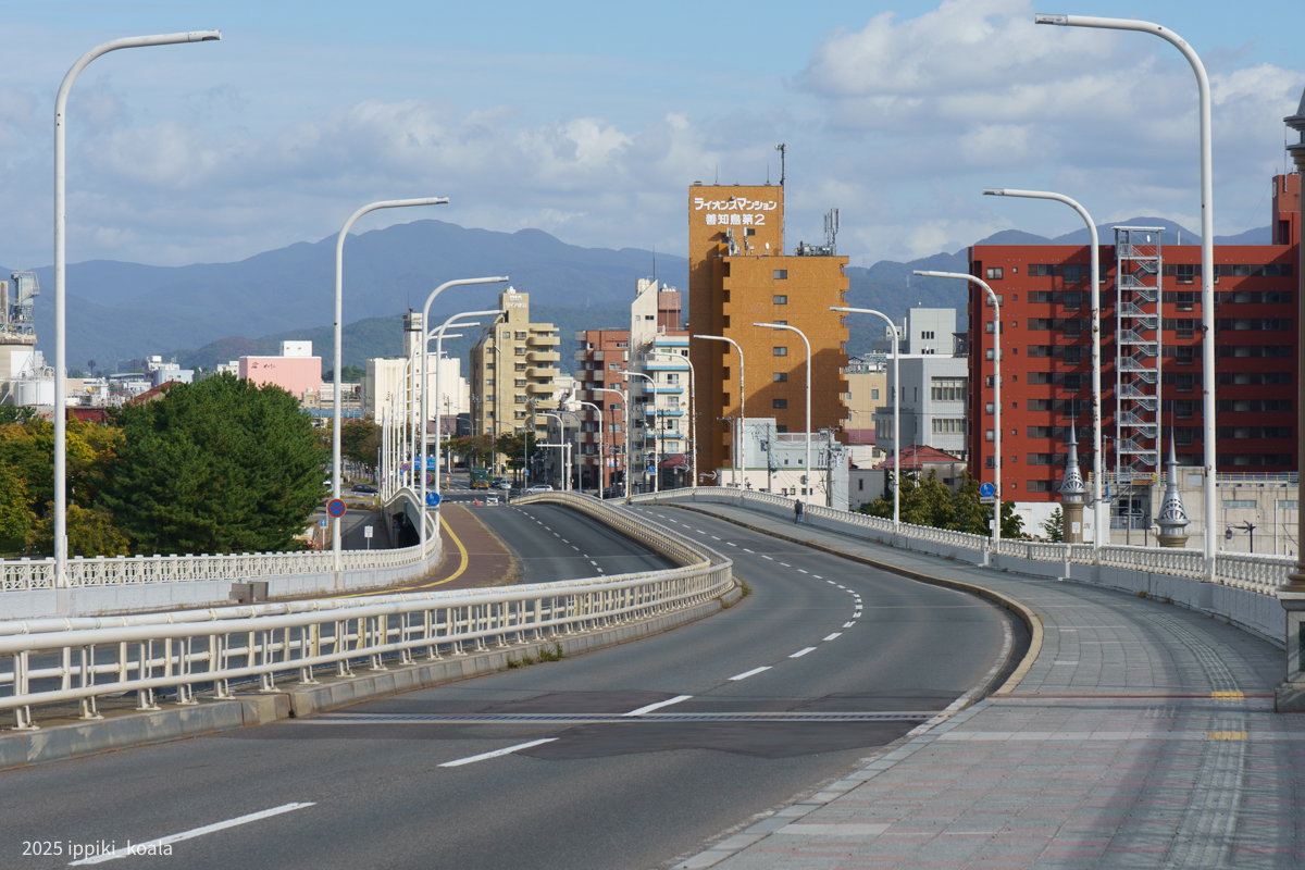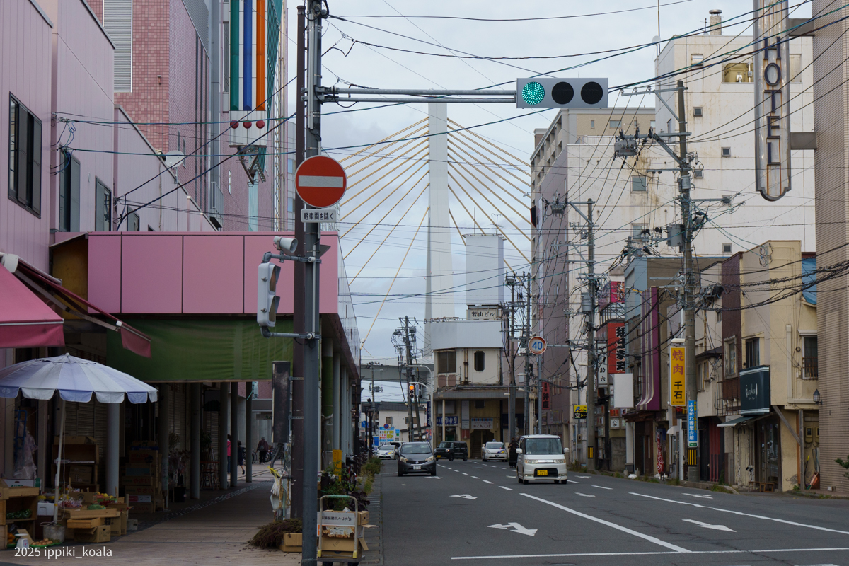 青森駅周辺を歩くことにしました。青森を象徴するような橋が青森ベイブリッジ。どこから見ても橋が見えます。